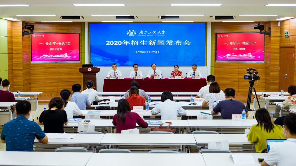 本网讯 又到了一年一度的高考填报志愿时间。为了让广大考生和家长,以及社会各界了解学校的发展新动态、人才培养新亮点、招生新变化,7月20日上午,华体会体育官方网站2020年招生新闻发布会在大学城校区实验三号楼智慧课室举行。会上,校长邱学青从学校的办学实力和水平、人才培养特色亮点、促进学生全面发展举措、招生政策和变化等方面介绍了一个“不一样的广工”,并生动阐述了广工“大、实、特、快”四个鲜明特征。教务处处长李丽娟、学生工作处处长植林、招生办公室主任苏兆祥分别发布了相关信息。发布会上,回答了记者、考生及家长提出的问题。
