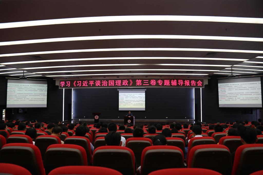 本网讯 为不断把学习《习近平谈治国理政》第三卷引向深入,9月23日下午,学校举行党委理论学习中心组(扩大)会议暨党员领导干部学习《习近平谈治国理政》第三卷专题培训,邀请省委宣讲团专家作专题辅导报告。学校党委副书记陈良友主持报告会。