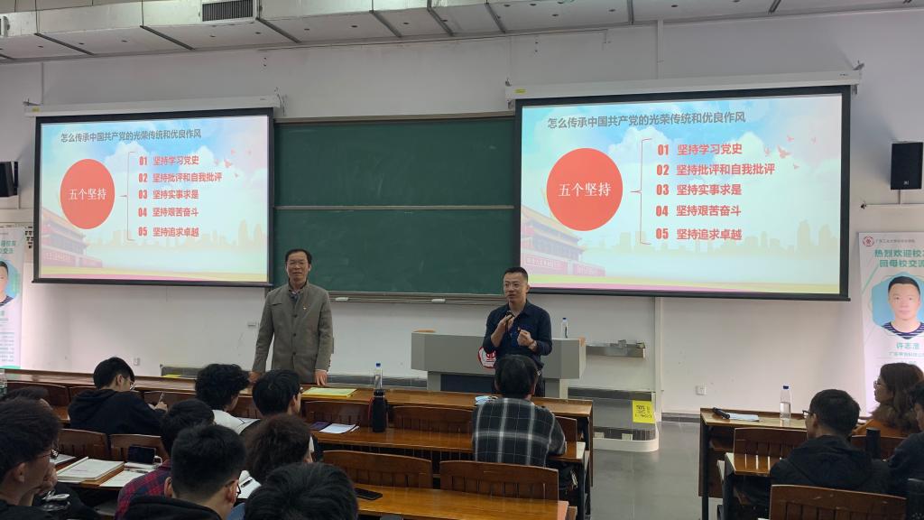 精心打造“思政第一课”,广泛开展党史宣讲各二级党组织把百年党史作为本学期书记院长“思政第一课”的鲜活教学内容,引导青年学子从学习党史中汲取智慧和力量,传承发扬好党的优良传统。马克思主义学院组织授课教师进行集体备课,围绕党史如何更好融入思政课教学和具体路径进行专题研讨。机电工程学院以《学党史悟思想,努力推动高质量发展》为主题,引导学生准确把握党的历史发展的主题主线、主流本质。自动化学院党委书记与校友同上思政第一课,激励学生紧握榜样的“接力棒”。艺术与设计学院以《新时代设计青年的使命与担当》为题,鼓励同学们学习百年党史、筑梦时代青年,用设计共同推动国家高质量发展。针对学校工科学生特点,土木与交通工程学院、计算机学院、物理与光电工程学院等以“科技报国”“打好科技自立自强的‘主动仗’”为主题讲课,启发学生们在学做融合中用青春筑梦科技报国。