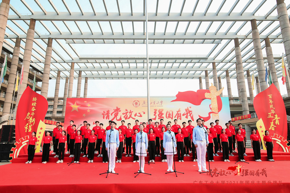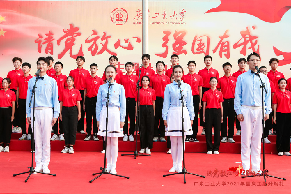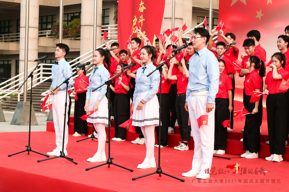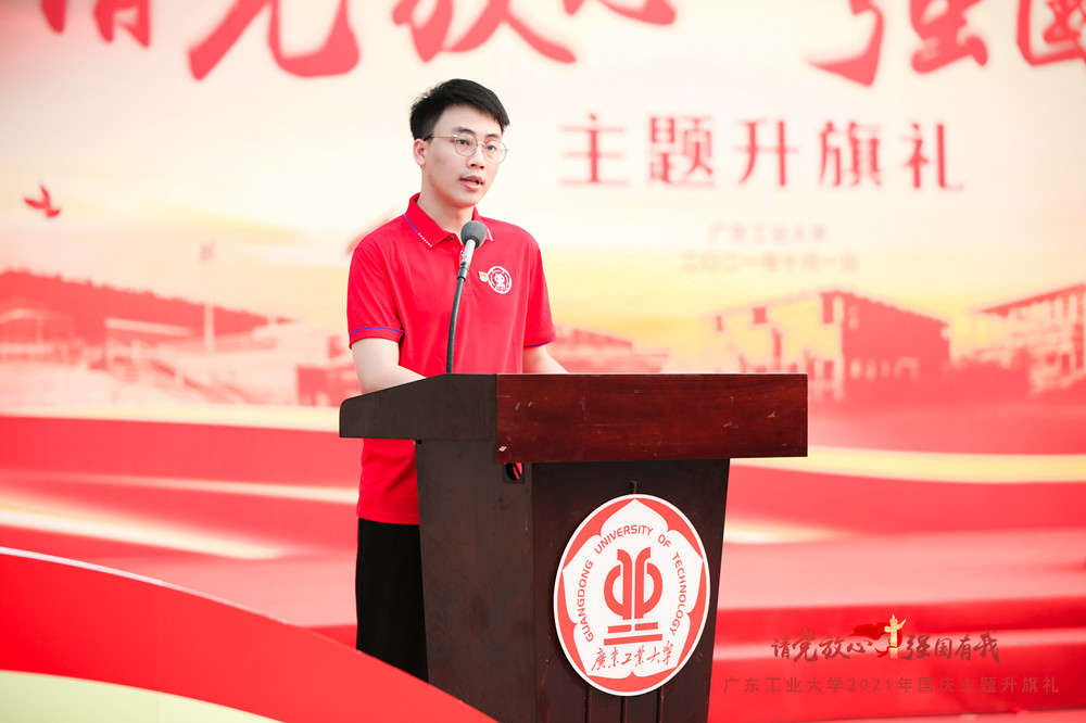 本次活动还对2021年学校“青年大学习,一起学党史”主题团课优秀组织和“请党放心,强国有我”暑期社会实践活动优秀组织进行了表彰;轻工化工学院陈锦锋同学作为暑期社会实践活动学生代表进行了感悟分享;青年学生代表献上主题朗诵《请党放心,强国有我》,讲述工大人与祖国共同奋进的故事,号召全校师生牢记使命与责任,传承强国志、奋进新时代;全场师生深情合唱《歌唱祖国》,共同祝福伟大的祖国生日快乐、繁荣昌盛!