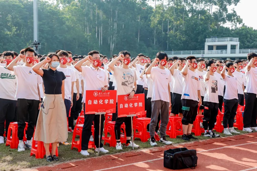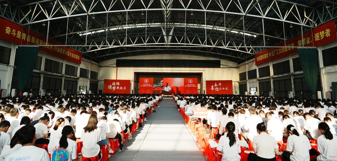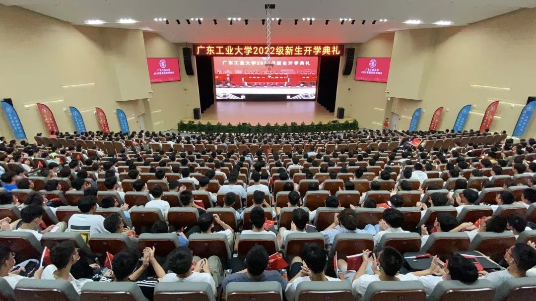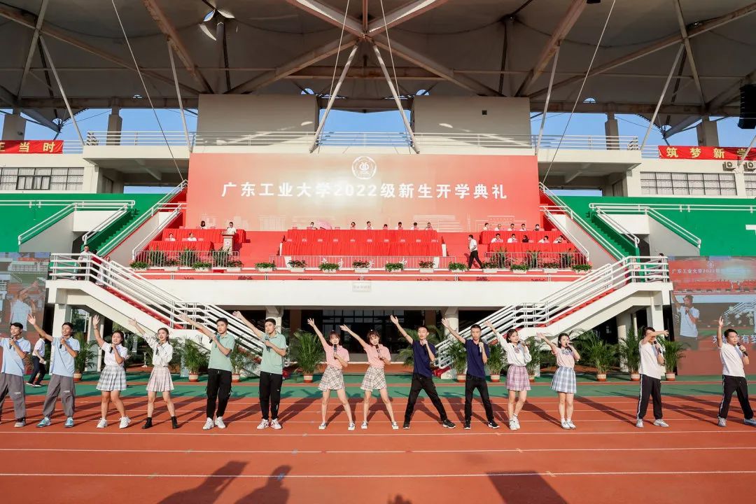 “风起岭之南,潮涌珠江畔,逐梦号角响,使命肩上扛……”,典礼最后,全场广工人共同唱起校歌《逐梦》,用嘹亮的声音叩响青春的大门。
