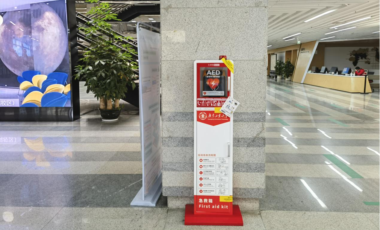 20部有着“救命神器”之称的AED(自动体外心脏除颤器)在广工大学城、龙洞、东风路、番禺、揭阳五个校区的重点场所及人员密集处新增上线,体育馆、篮球场、教学楼、图书馆……一盏盏“生命之灯”在学校地图上点亮,守卫师生生命安全。
