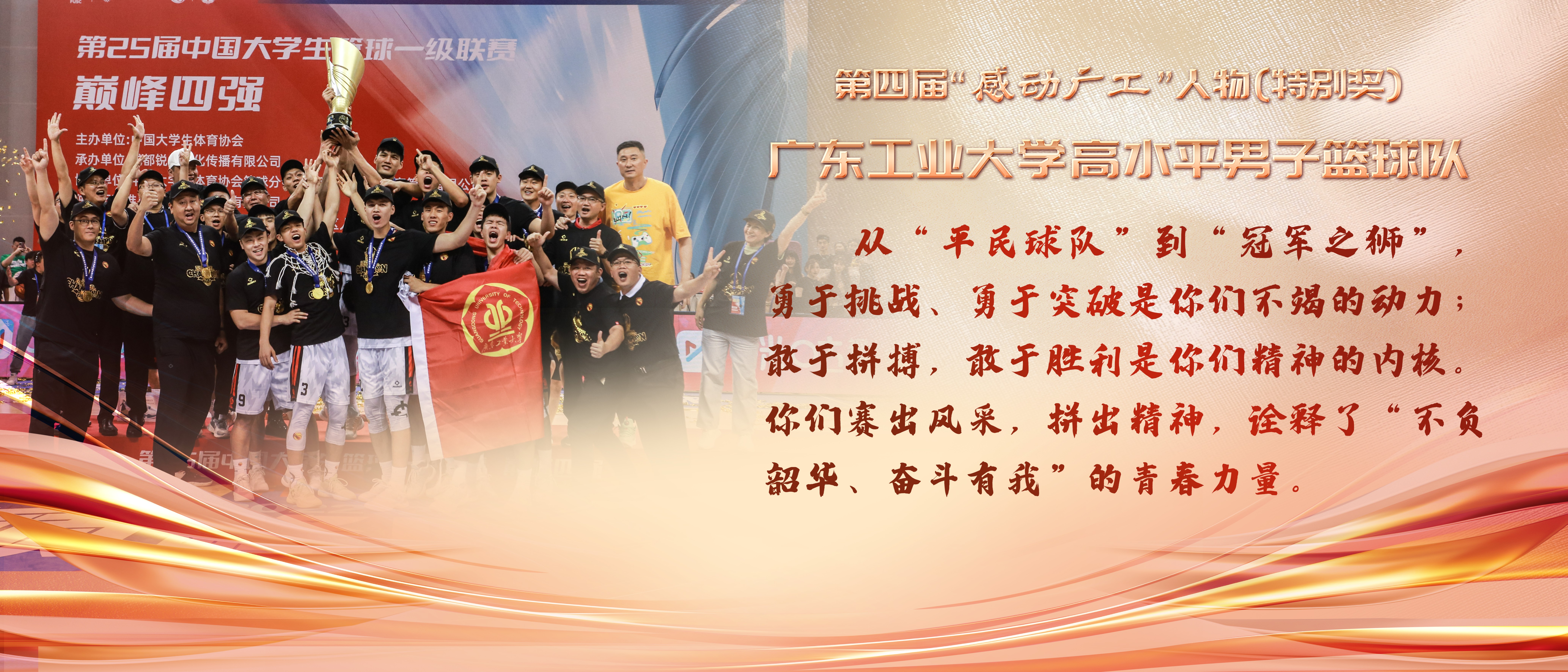华体会体育官方网站第四届“感动广工”人物颁奖盛典旨在致敬感动的力量,凝练和弘扬“广工精神”,打造新时代广工人的精神标杆。活动通过自下而上、层层推荐、大众投票,最终评选出10位第四届“感动广工”人物(群体)。