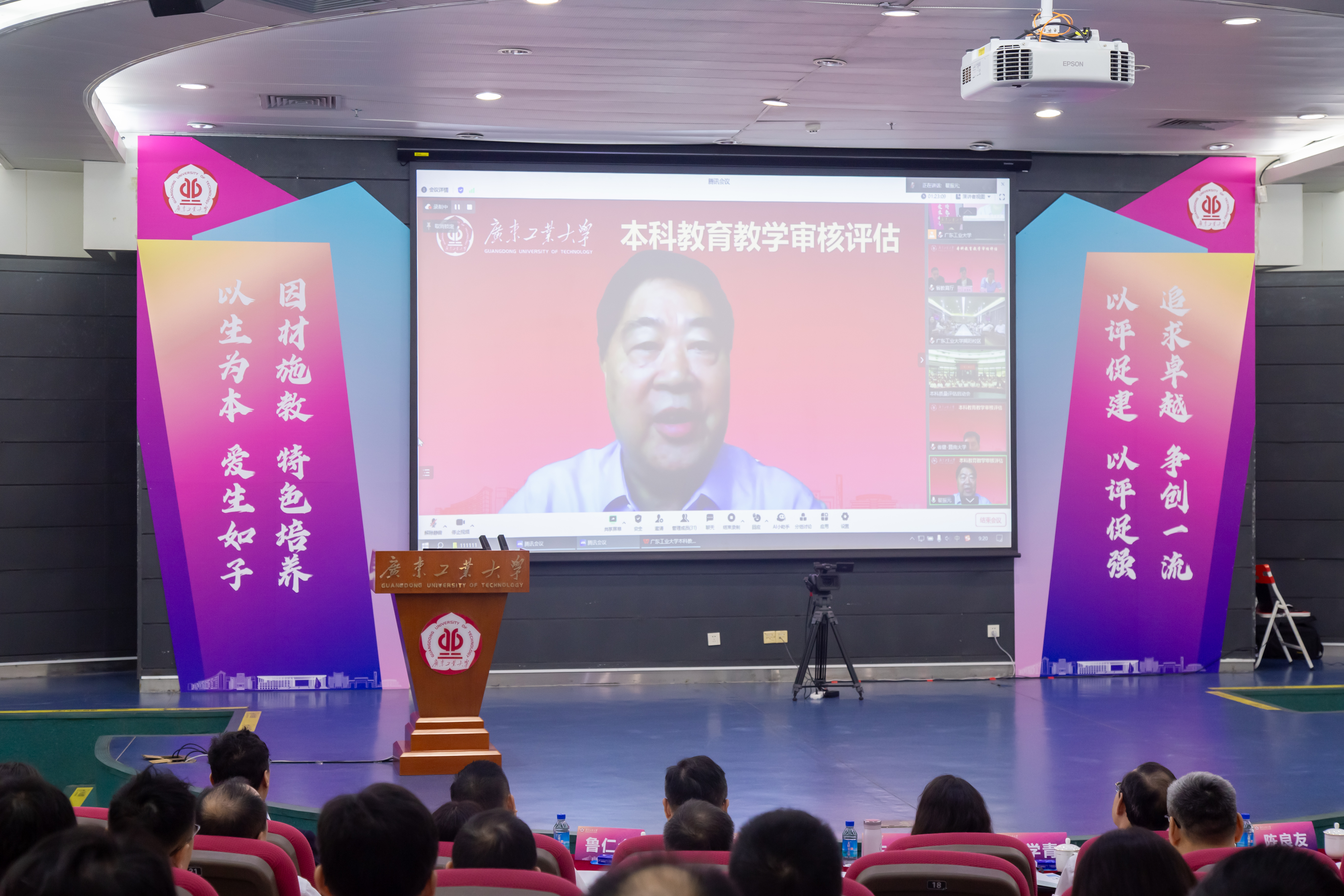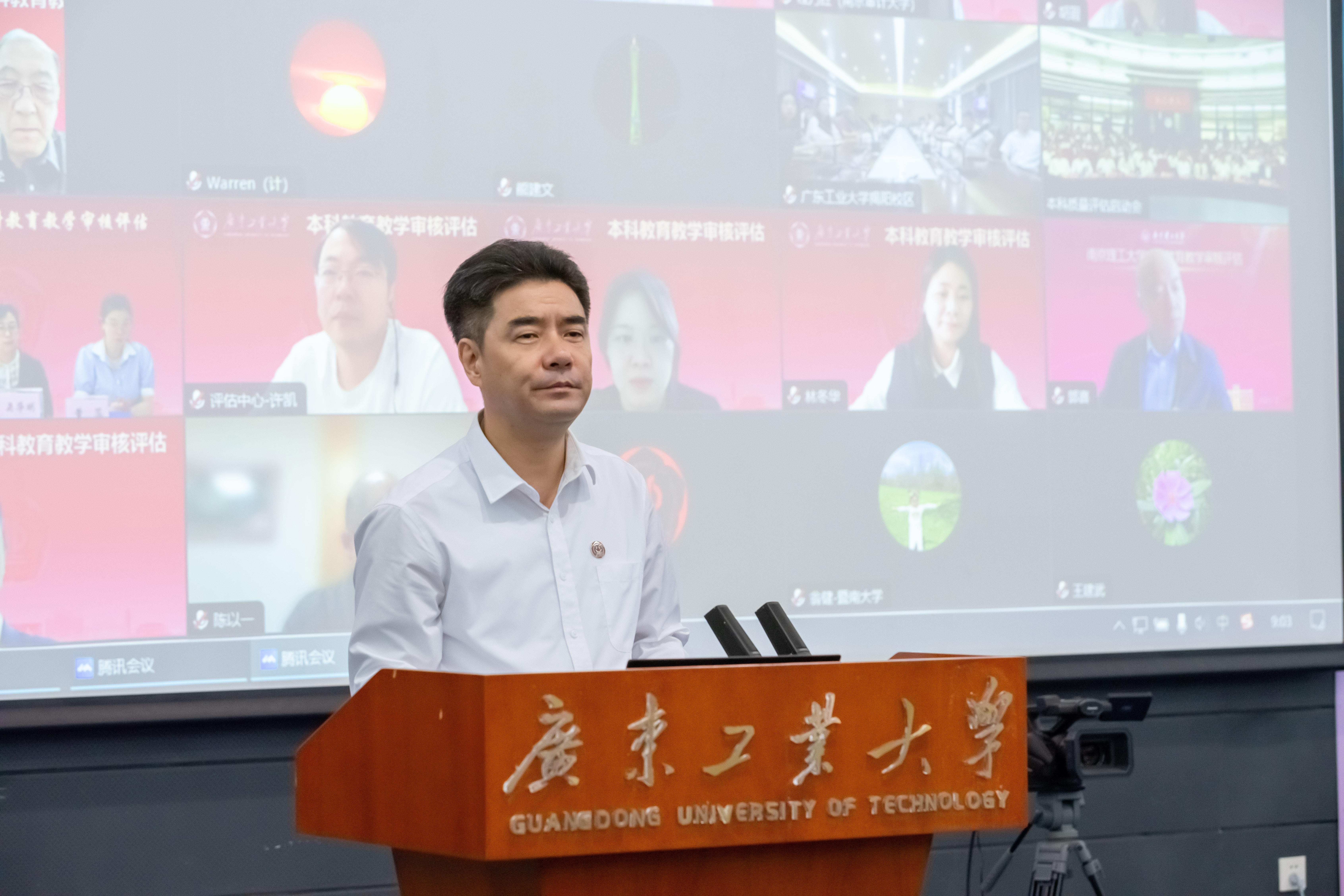 5月13日,华体会体育官方网站在大学城校区大讲堂圆弧报告厅召开本科教育教学审核评估线上评估启动会,会议采取线上线下相结合的形式召开。由中国高等教育学会原会长瞿振元担任组长、河南工业大学党委书记刘志军担任副组长的本科教育教学审核评估专家组,广东省教育厅高等教育处副处长吴华明及相关同志线上出席会议。学校党委书记胡钦太,党委副书记、校长邱学青,党委副书记陈良友、朱蔚蔚,党委常委、副校长杜承铭、王成勇,副校长余林,党委常委、副校长鲁仁全、王振友,党委常委、纪委书记、广东省监委驻华体会体育官方网站监察专员庞建国,党委常委、副校级干部张学理线下出席会议。学校各党政管理机构、教辅机构、群团组织、独立法人机构主要负责人、各教学单位党政主要负责人和分管教学副院长(副主任)参会。