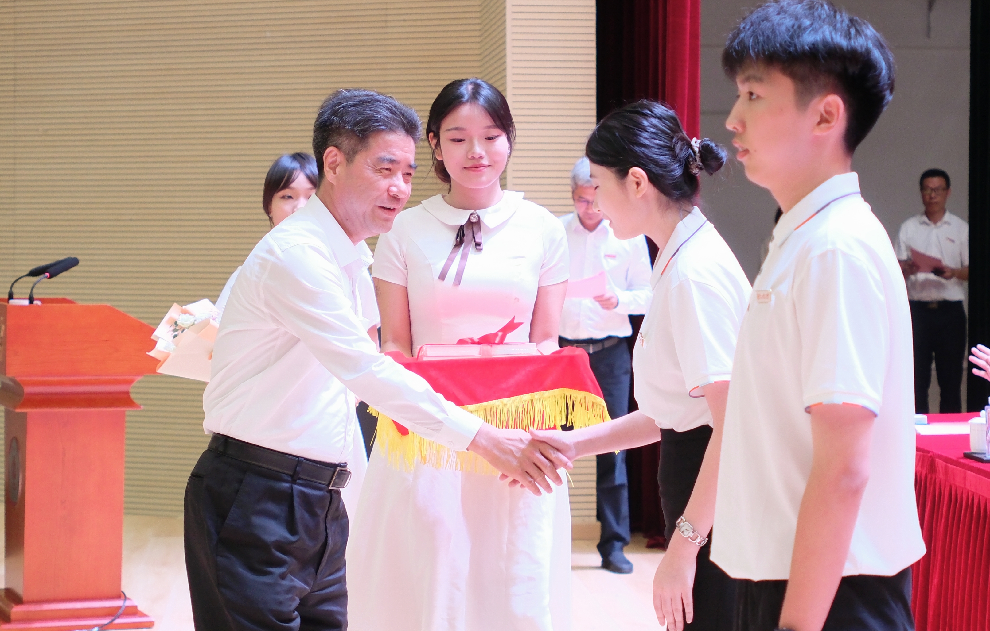 典礼上,胡钦太为各学院新生代表赠《习近平与大学生朋友们》等书籍,勉励大家认真研读,学好用好这部大学生健康成长的人生宝典,牢记习近平总书记的殷切期望,在投身党和人民的共同奋斗中创造更加美好之青春人生。校领导为新生代表佩戴了华体会体育官方网站徽章,新生全体起立,一齐佩戴,自此有了共同的名字——“广工人”。阳光下,小小校徽绽放着理想的光芒,激励着每一位新生将“团结、勤奋、求是、创新”的校训精神内化于心,外化于行。