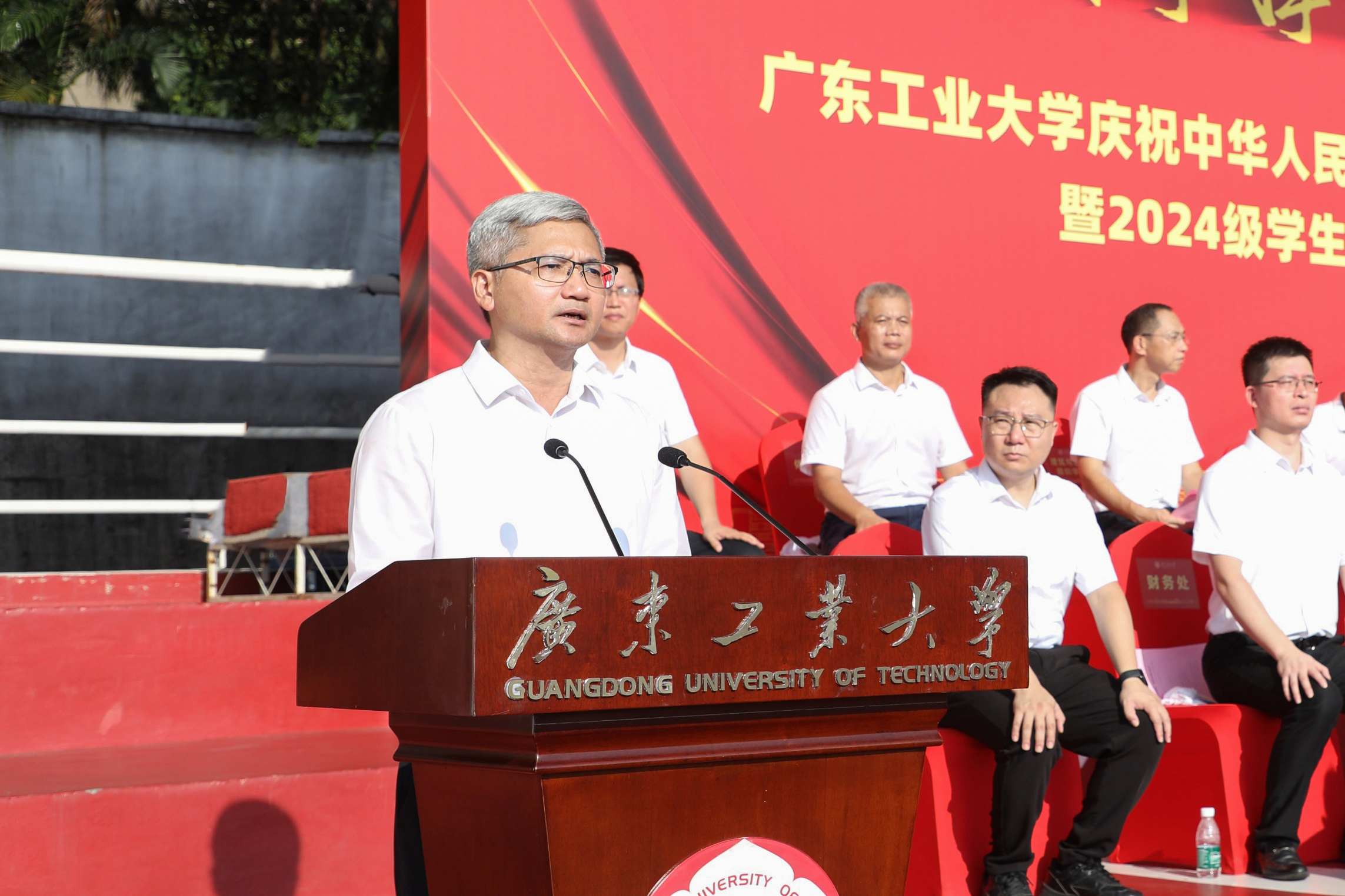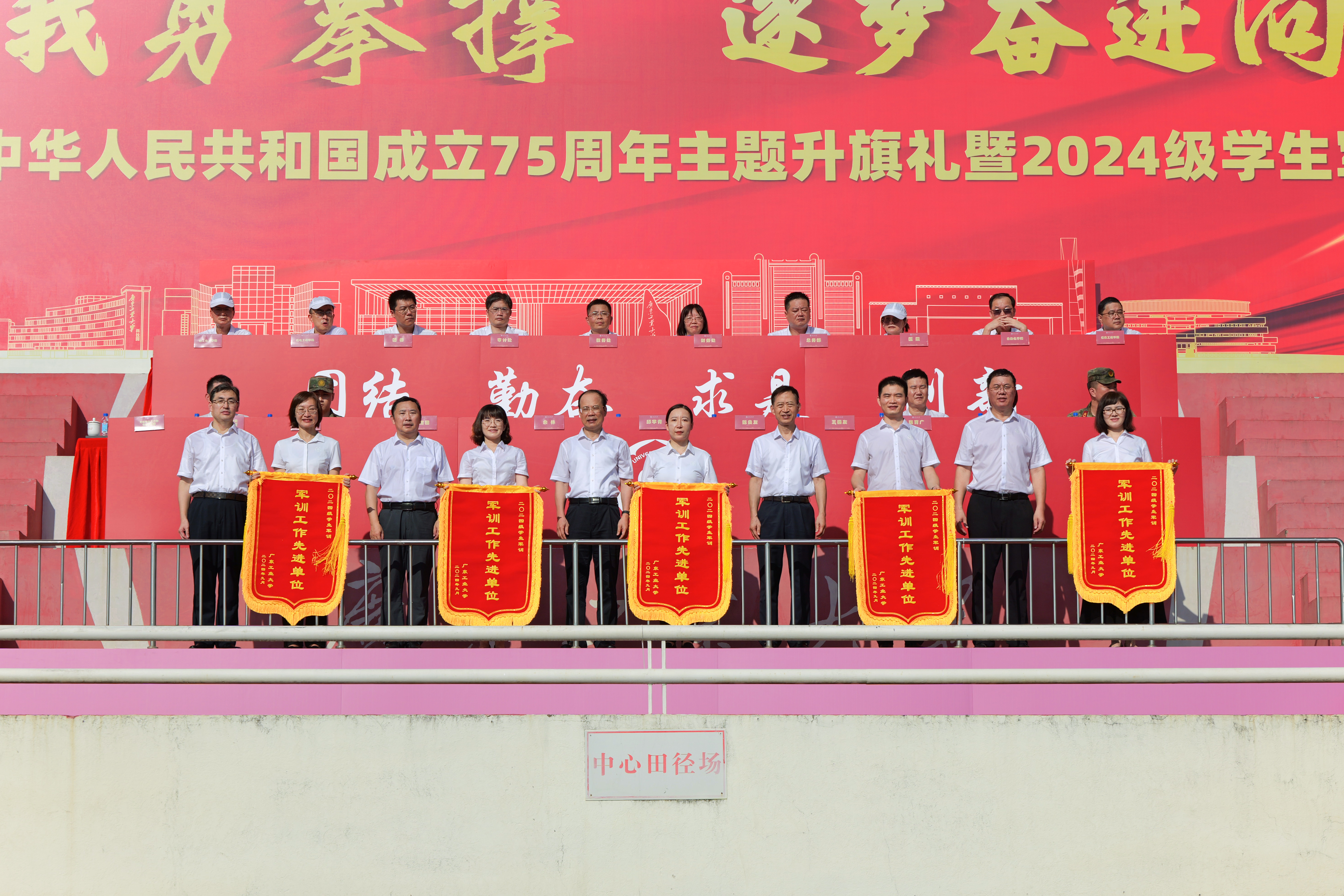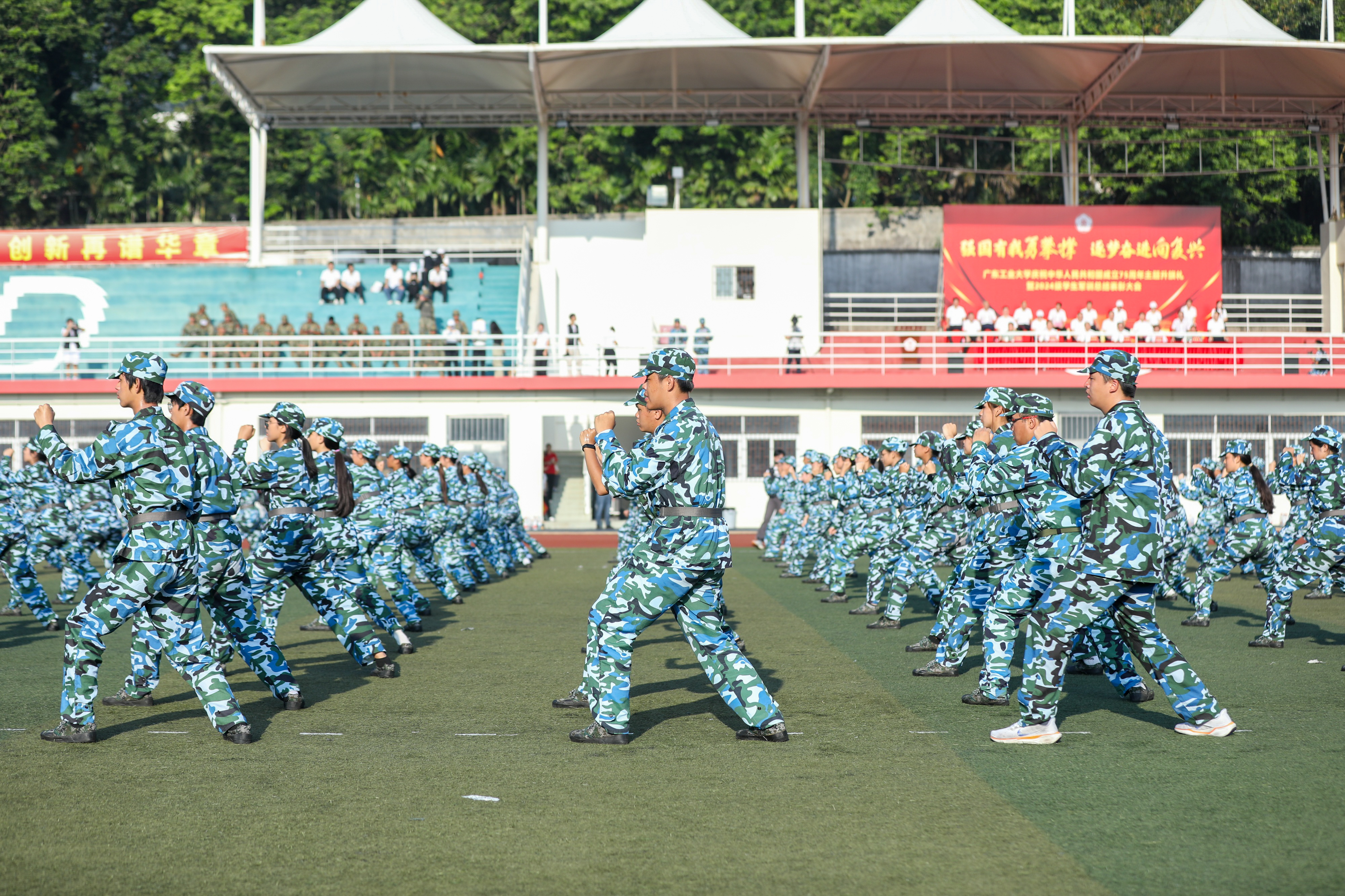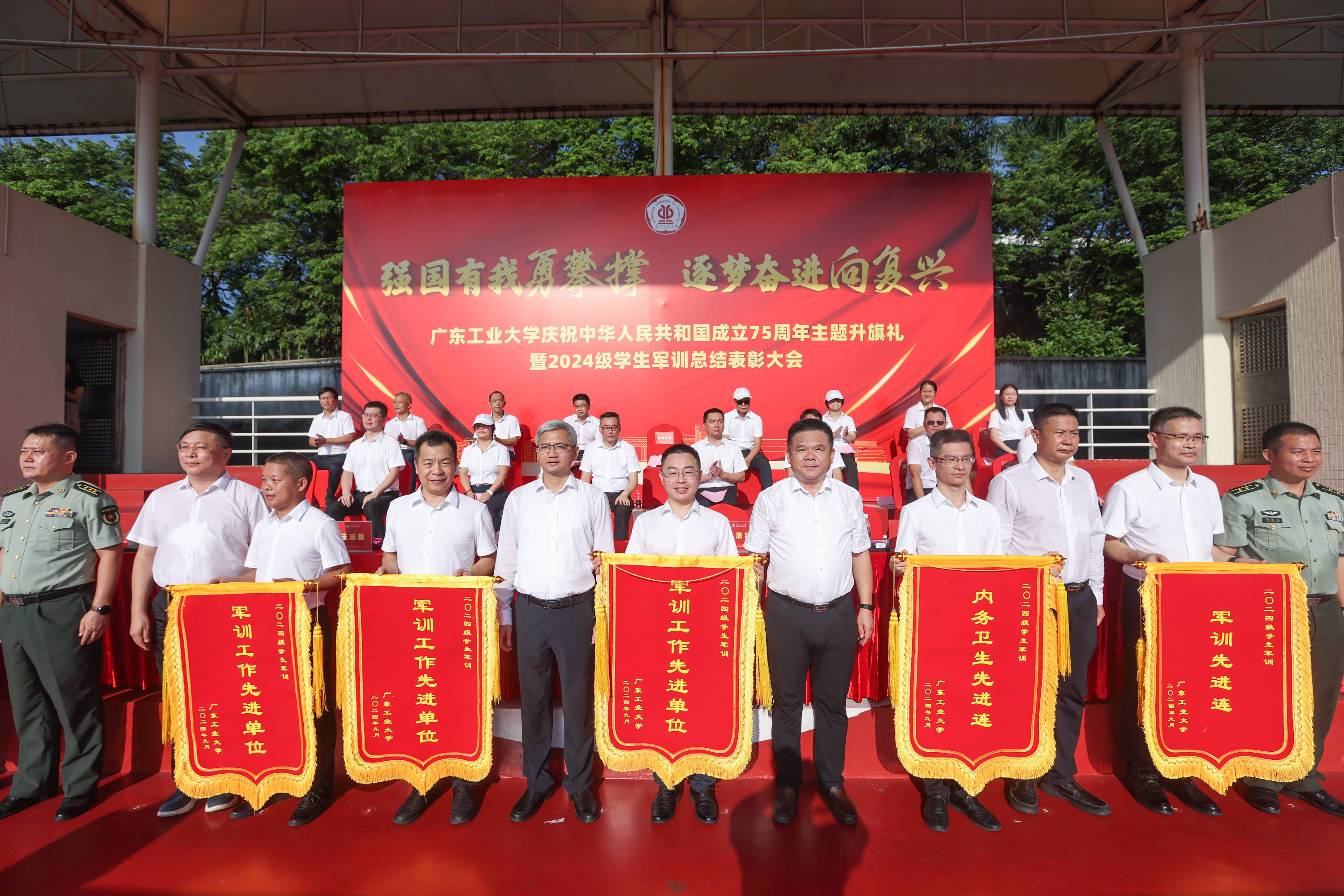 “希望广工学子坚定不移听党话、跟党走,在推进强国建设、民族复兴伟业中展现青春作为、贡献青春力量!”邱学青、朱蔚蔚、陈卓武作军训总结讲话,代表学校向承担军训任务的军训教官、军训工作人员和老师们表示衷心的感谢,向圆满完成军训任务的2024级全体本科生表示祝贺。他们寄语同学们要永葆爱国之情,以家国情怀绘就生命底色;要砥砺强国之志,以远大理想引领奋斗航向;要实践报国之行,以挺膺担当创造人生价值,在“请党放心,强国有我”的时代强音指引下,在“团结、勤奋、求是、创新”的校训精神引领下,接续奋斗、勇毅前行,让青春在全面建设社会主义现代化国家的实践中绽放绚丽之花。