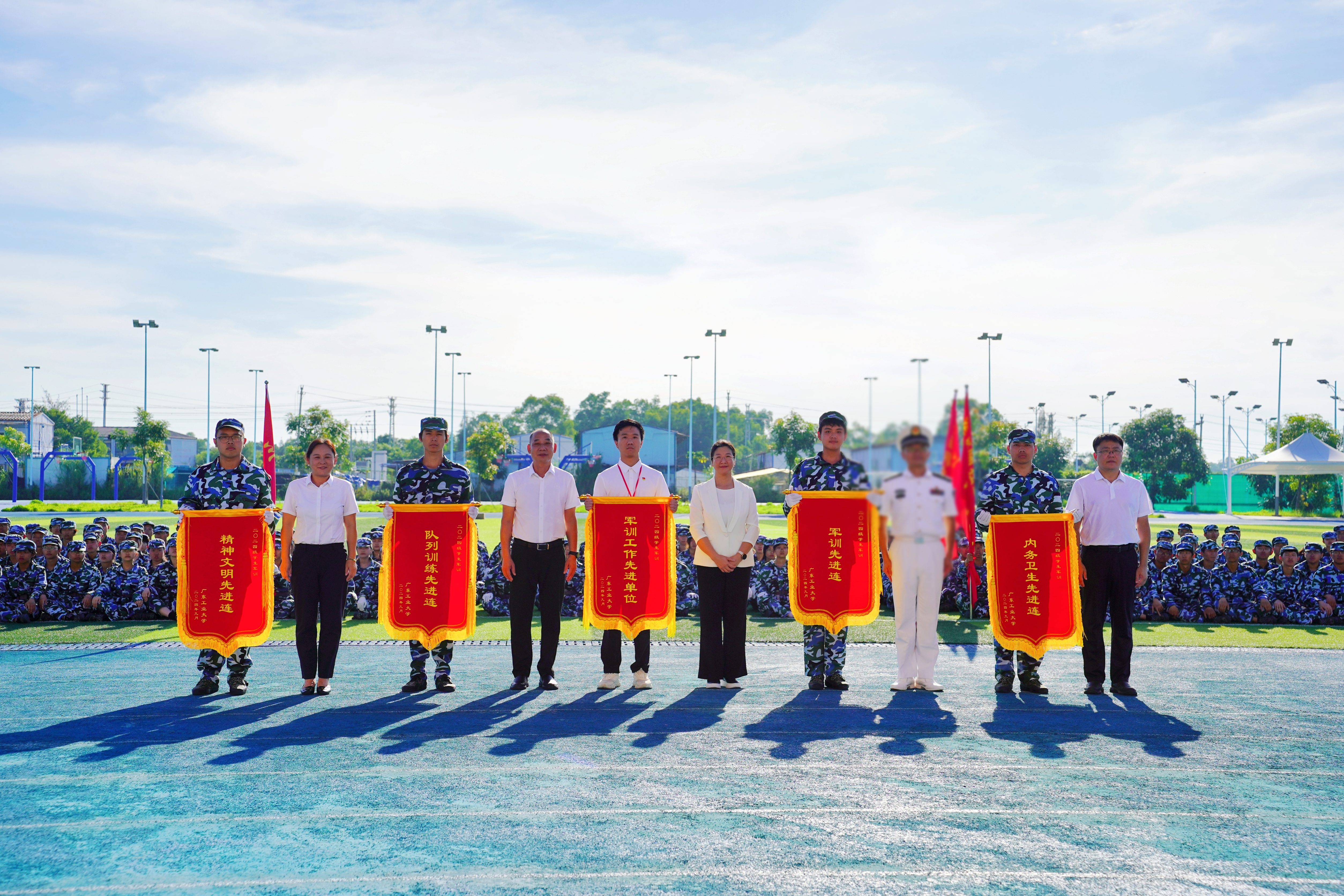 此次军训涌现出一批先进集体和个人。陈良友、杜承铭、揭阳校区负责人分别宣读《关于表彰2024级学生军训先进集体和先进个人的决定》,校领导和承训单位领导为获奖集体和个人代表颁奖。