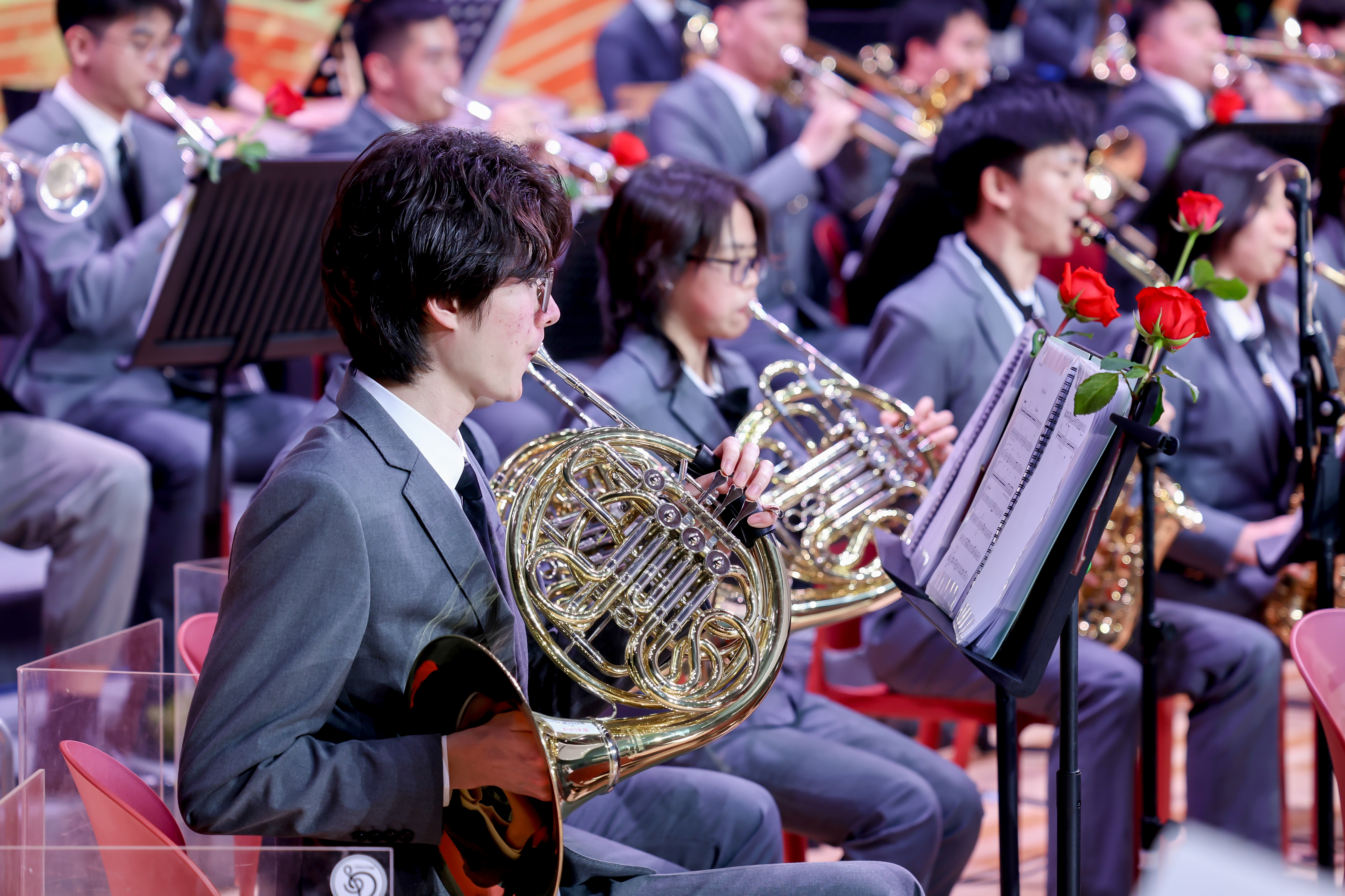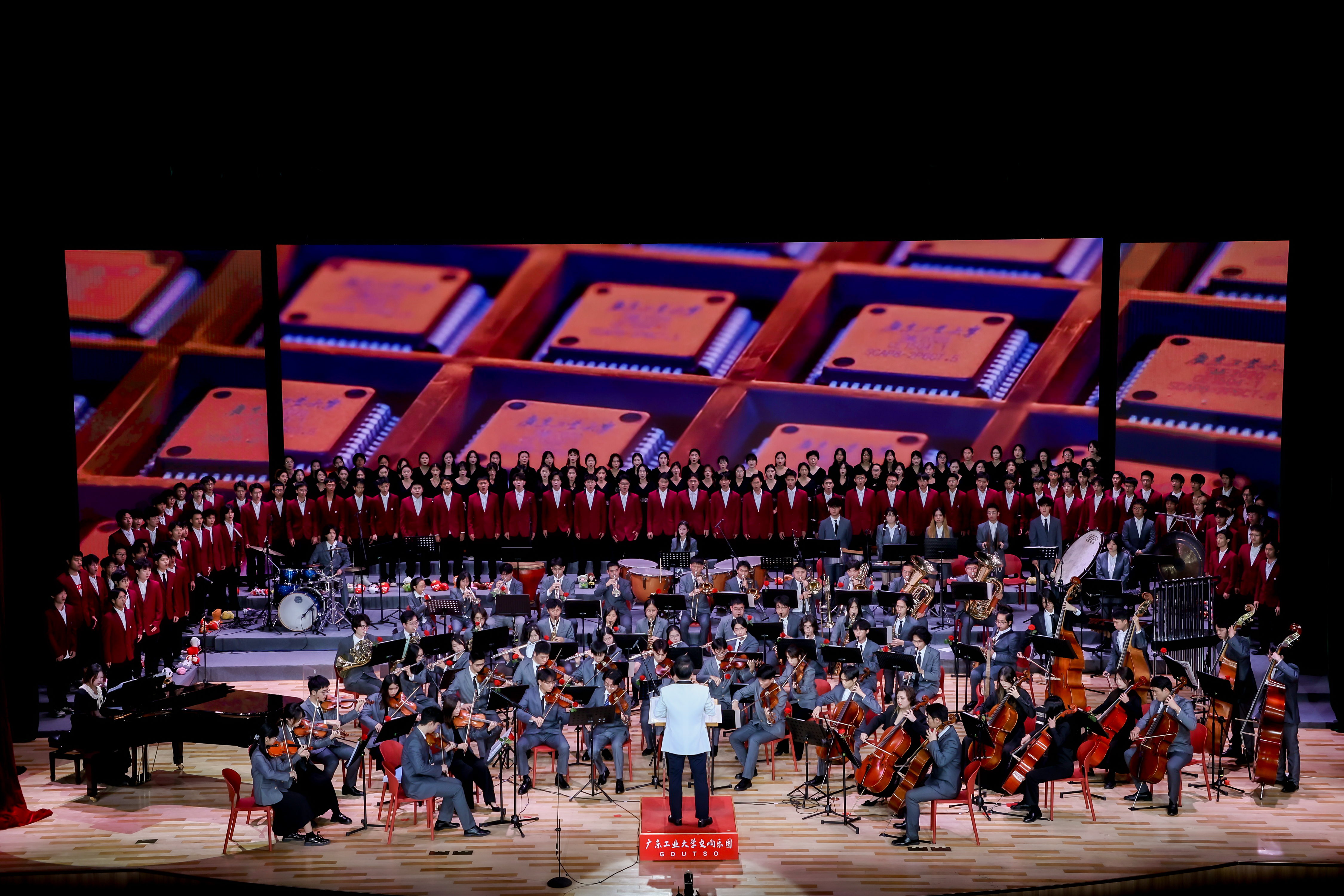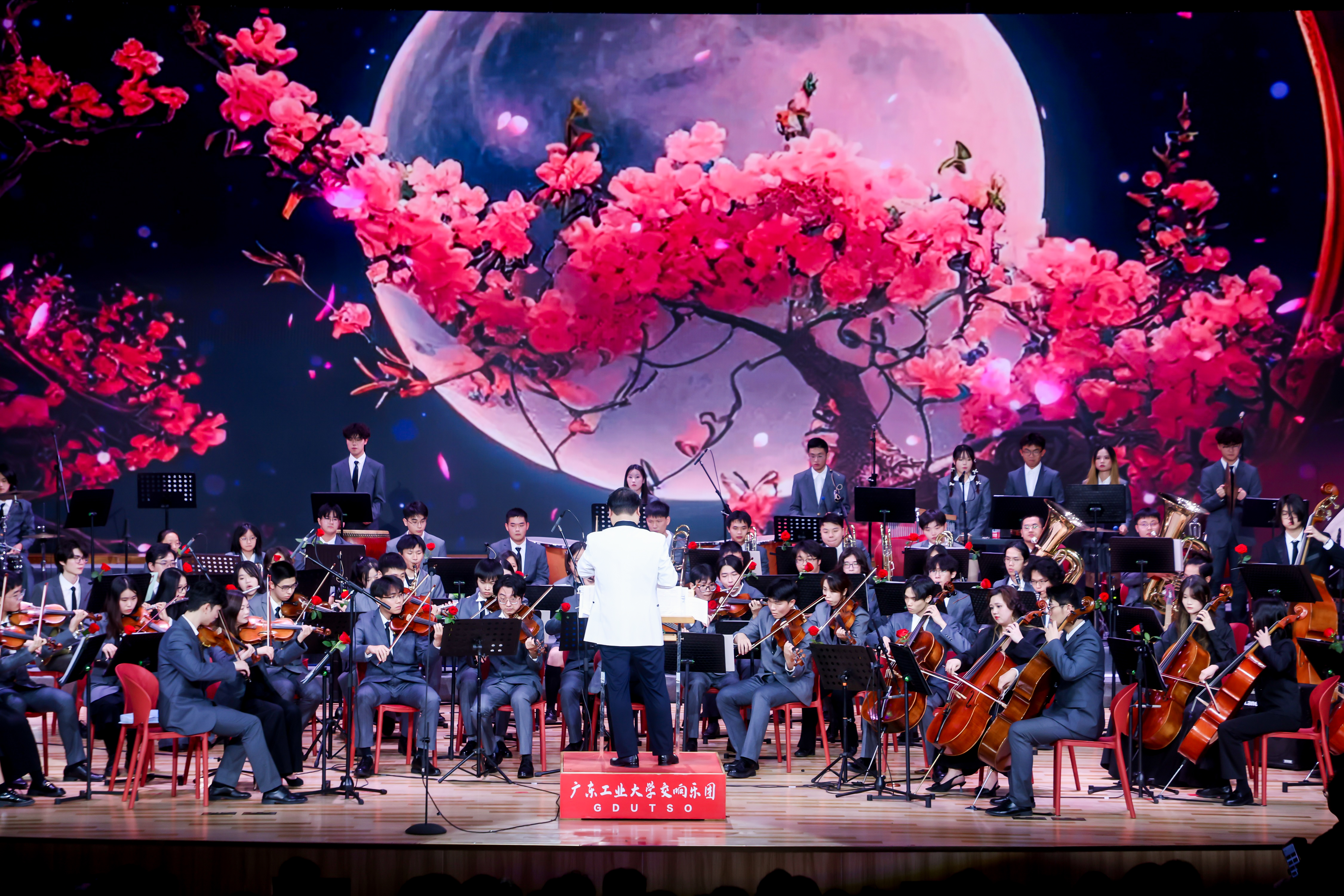 2025年新年音乐会不仅是一场艺术的盛会,更是广工美育教育丰硕成果的集中展现。经过多年“以文化人、以美育人”的深耕厚植,新年音乐会由一开始的交响管乐演奏音乐会发展为配置齐全的交响音乐会,后提升为融合合唱、民乐、古琴、书画、礼仪、剪纸等多元形式的视听盛宴,目前已成为线上线下同步进行、广泛传播的文化品牌。本场音乐会在官方视频号同步直播,观看人次近3万。