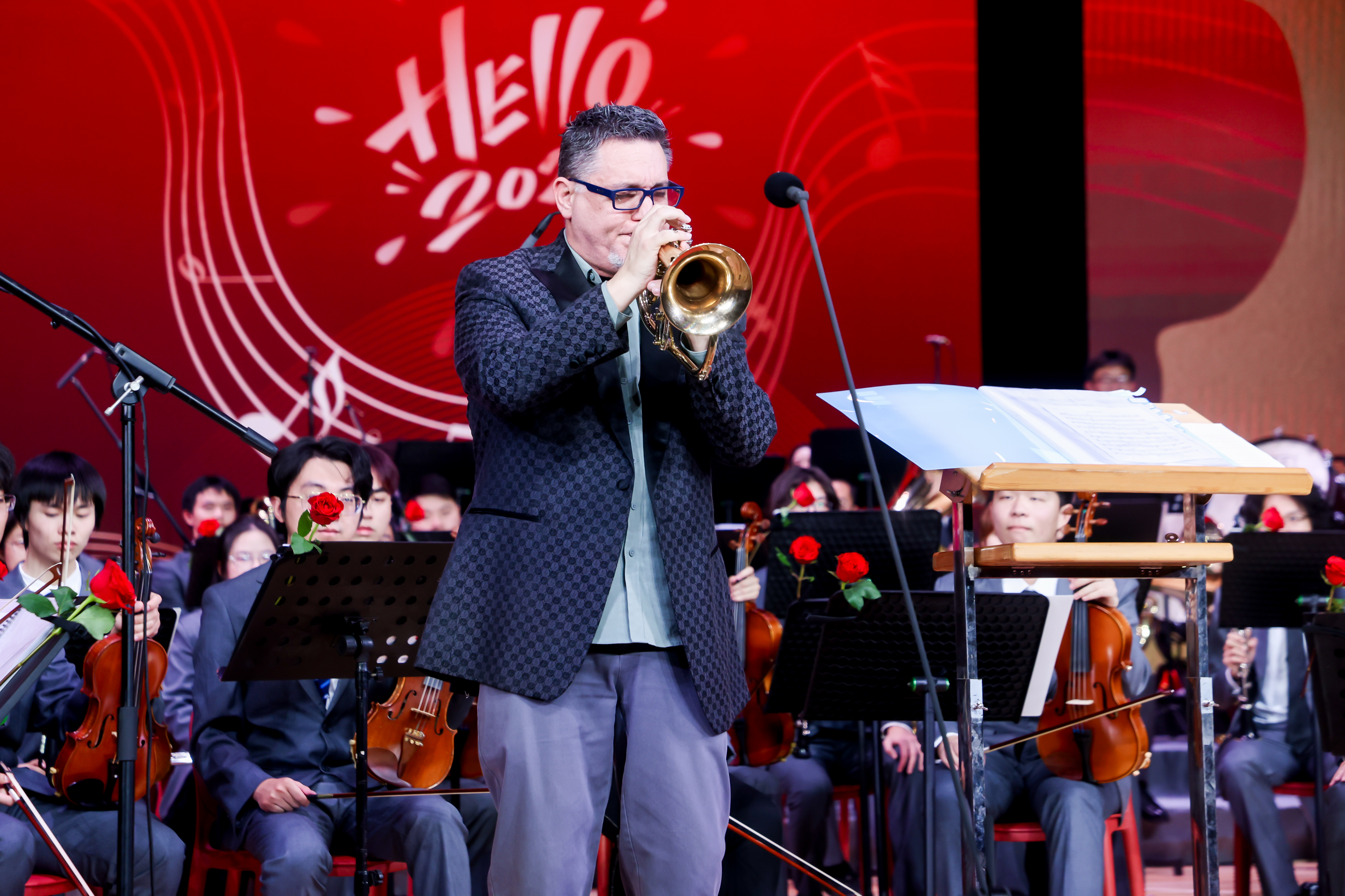值得一提的是,演奏嘉宾Rex Richardson曾在20年前到访过华体会体育官方网站。如今“故地重游”,他深感广工“变化之大”。Rex Richardson现任南卡罗来纳大学小号副教授、秘鲁小号学院荣誉教授,被誉为“当今世界最好的小号独奏家之一”。他为大家带来独奏曲目《East st. Louis Toodle-Oo》,并即兴演奏一曲《Blues in Guangzhou》。