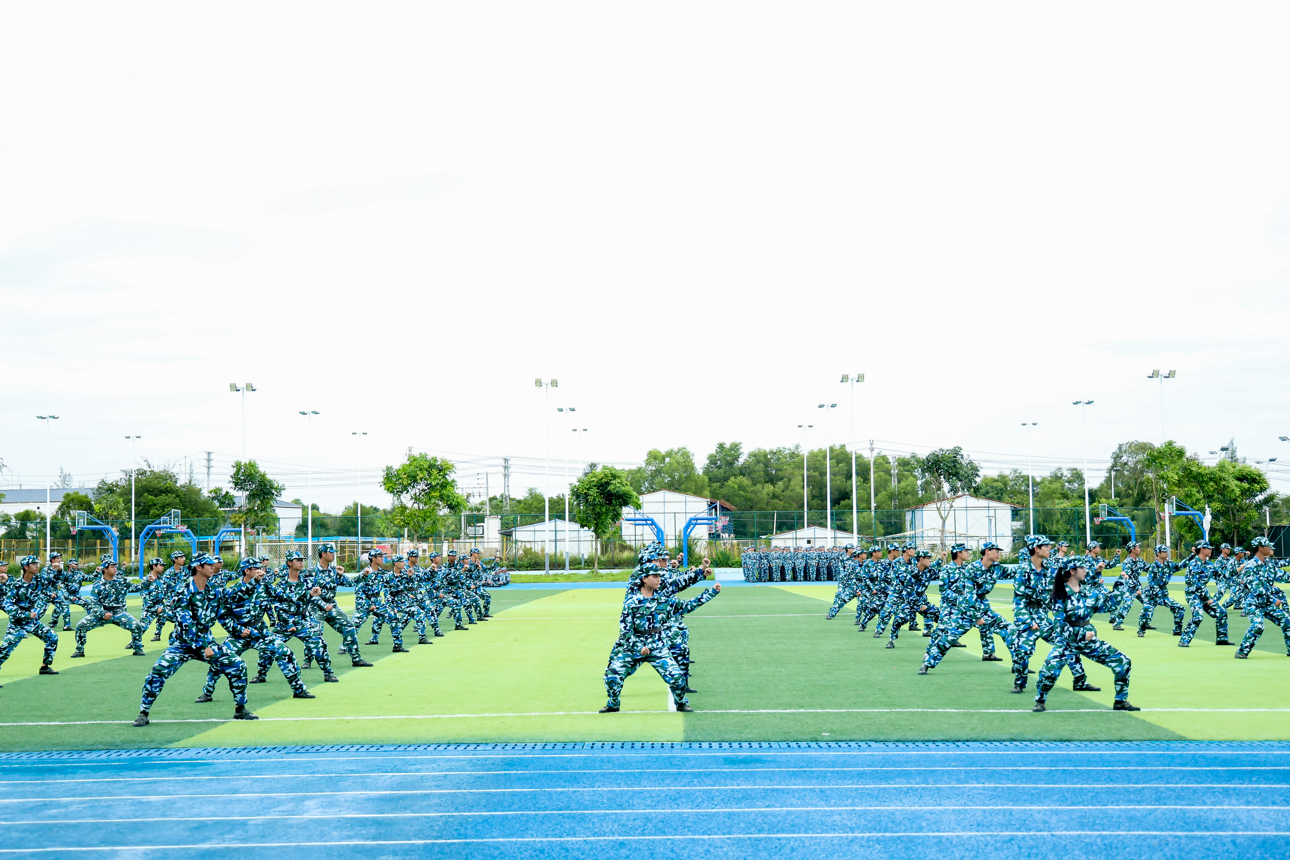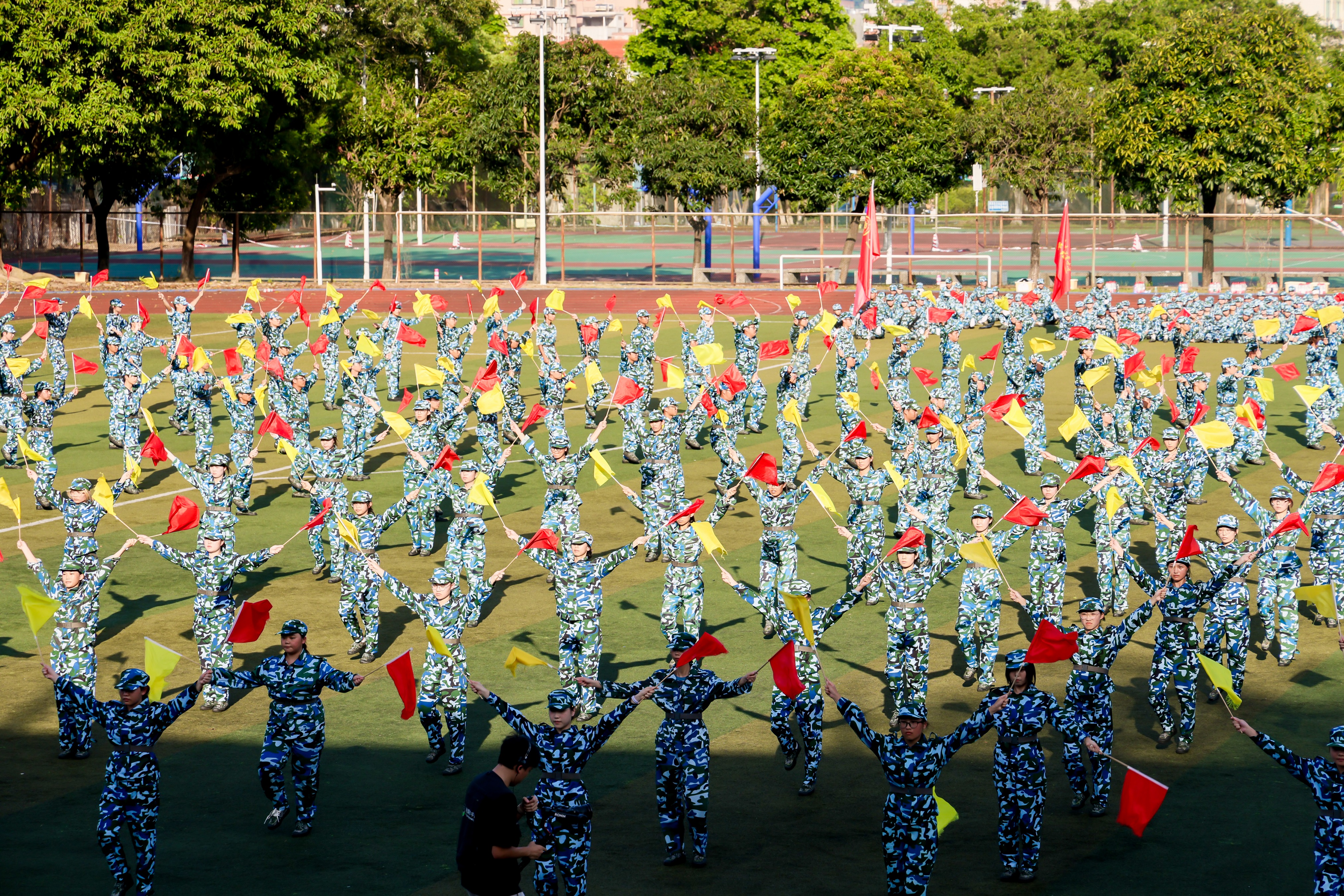 汇演中,同学们士气高昂、步伐矫健。擒敌拳、匕首操、水兵太极拳、旗语操、组合格斗术、刺杀操、军体拳、短棍术……飒爽的身姿,整齐的动作,拳起拳落,匕首生风,十四日淬火,铸就铮铮铁骨,现场气氛热火朝天,赢得师生们阵阵喝彩。