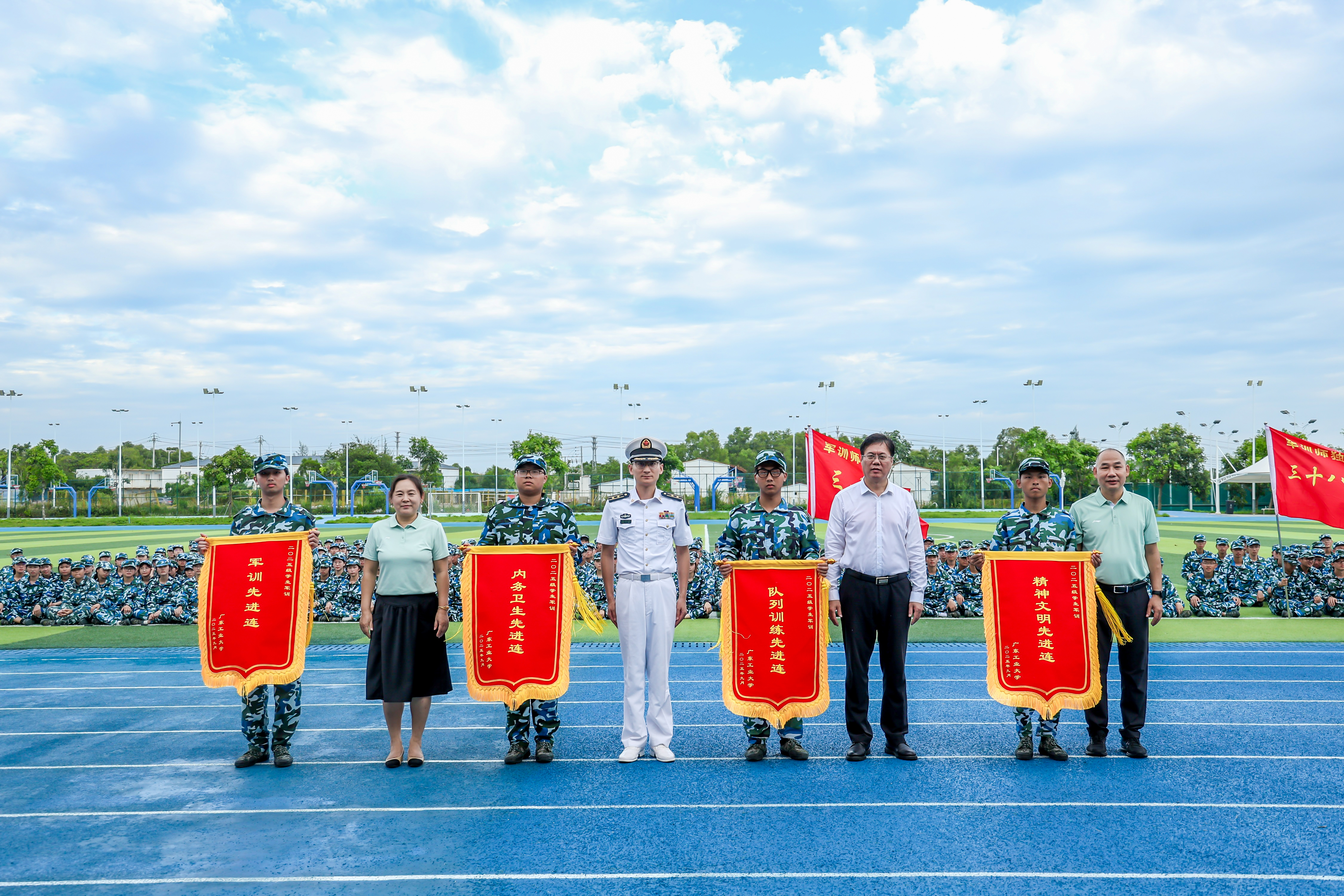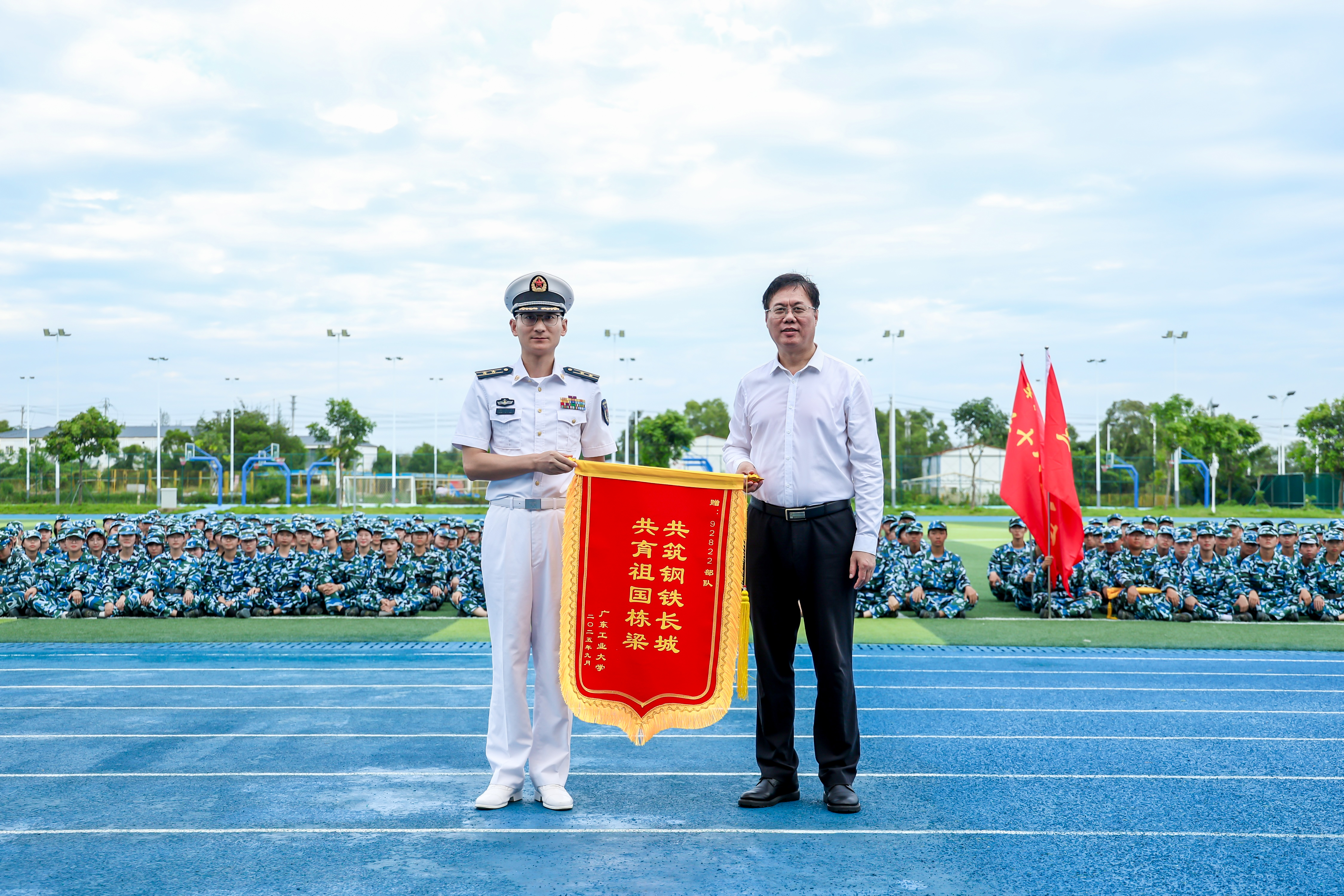杜承铭、王振友分别在龙洞校区、揭阳校区讲话。陈卓武、余林、揭阳校区负责人分别宣读《关于表彰2025级学生军训先进集体和先进个人的决定》,校领导和承训单位领导为获奖集体和个人代表颁奖。白建刚、杜承铭、王振友、余林向承担本次军训任务的陆军特种作战学院、中国人民解放军91676部队、中国人民解放军92822部队、广州市越秀区人民武装部赠送锦旗。