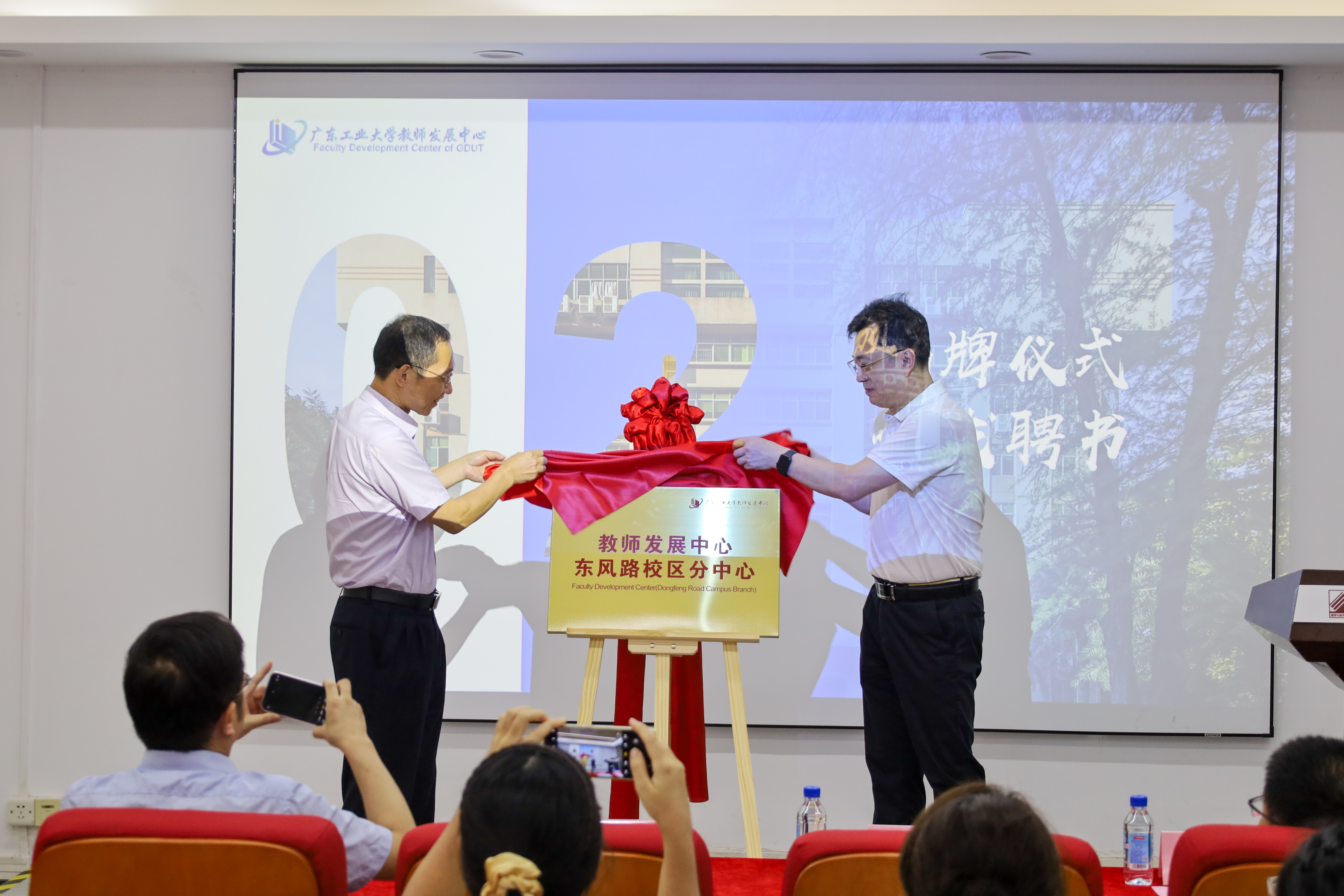 校教师发展中心主任贝淳介绍了中心以及其他两个分中心的工作开展情况,表示将和分中心共同努力,为一线教师提供更加符合东风路校区教师发展需求和更有针对性的培养培训支持,共同促进分中心教师的成长。随后,栾天罡和王伟文共同为东风路校区教师发展分中心揭牌,并为分中心主任蔡云楠教授、副主任汤晓颖教授、何韶颖教授颁发聘书。