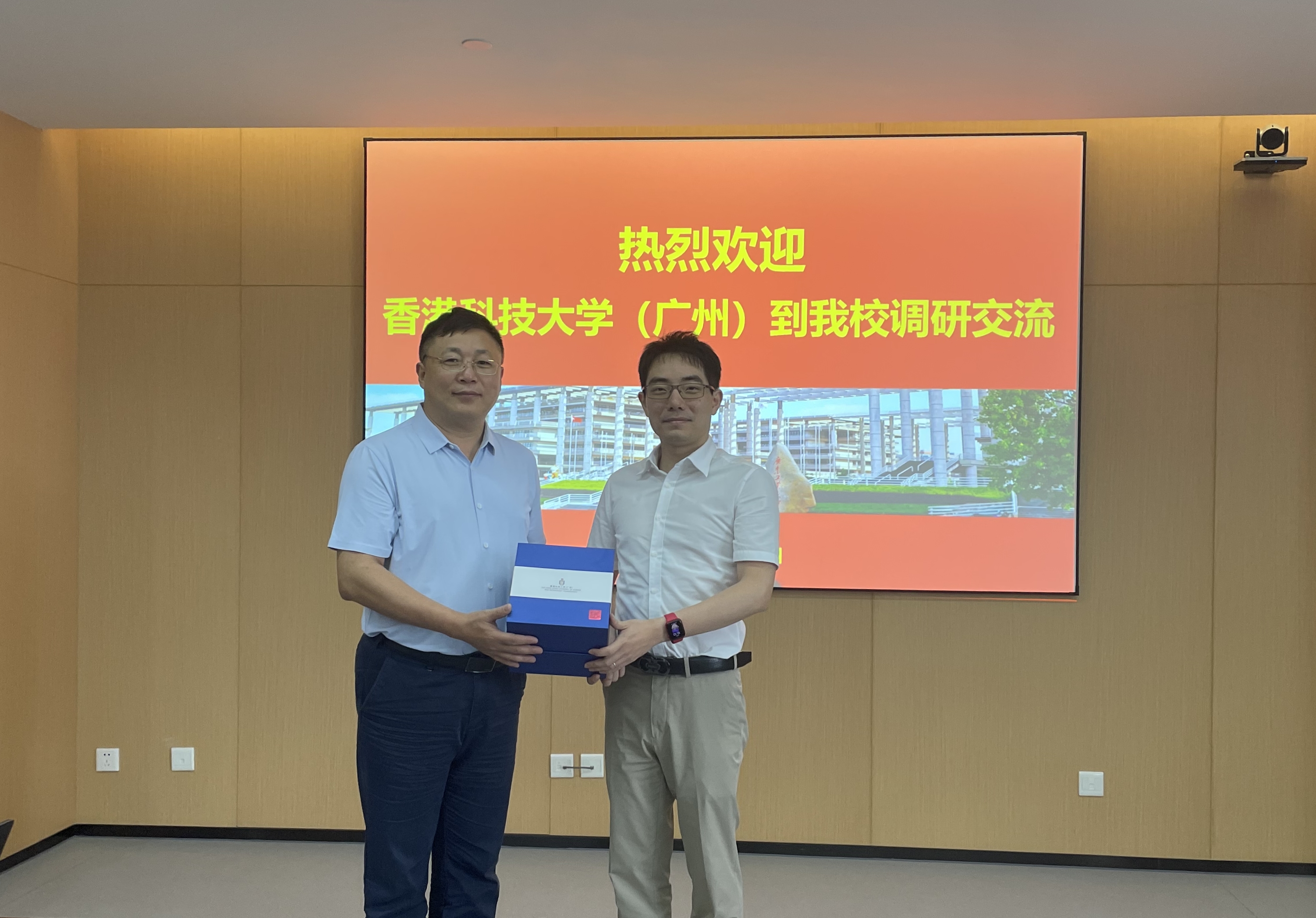 近日,香港科技大学(广州)协理副校长伍楷舜一行5人到校调研科学研究管理工作。学校党委常委、副校长王成勇在大学城校区行政楼702会议室会见来宾,科学研究管理部、人文社科处、科技处相关人员参加了座谈。
