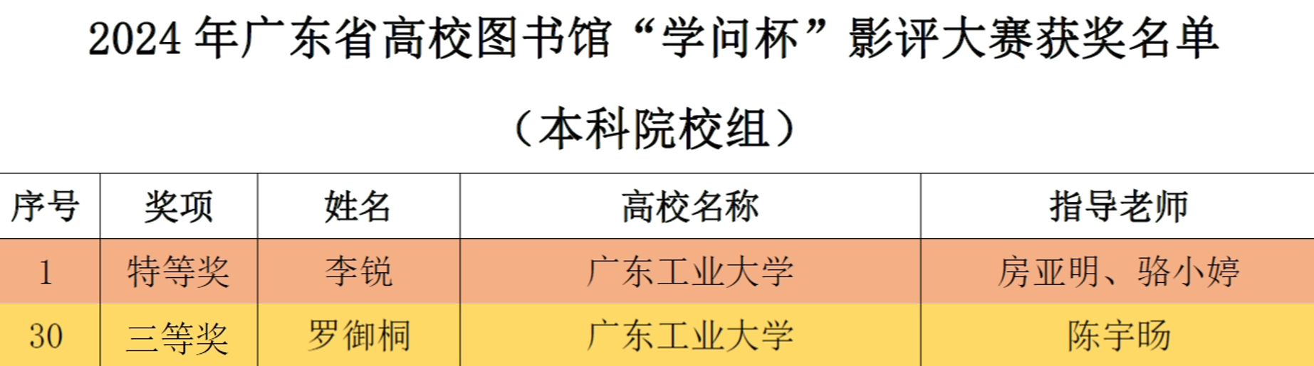 6月22日下午,2024年广东省高校图书馆“学问杯”影评大赛颁奖典礼在暨南大学番禺校区隆重举行。广工学生参赛作品从全省122所院校的9674篇有效稿件中脱颖而出,喜获特等奖1项,三等奖1项。