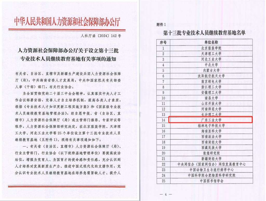 近日,国家人力资源和社会保障部办公厅发布《关于设立第十三批专业技术人员继续教育基地有关事项的通知》 (人社厅函[2024] 142号),华体会体育官方网站获批国家级专业技术人员继续教育基地,是今年通过申报审批的25家单位之一。