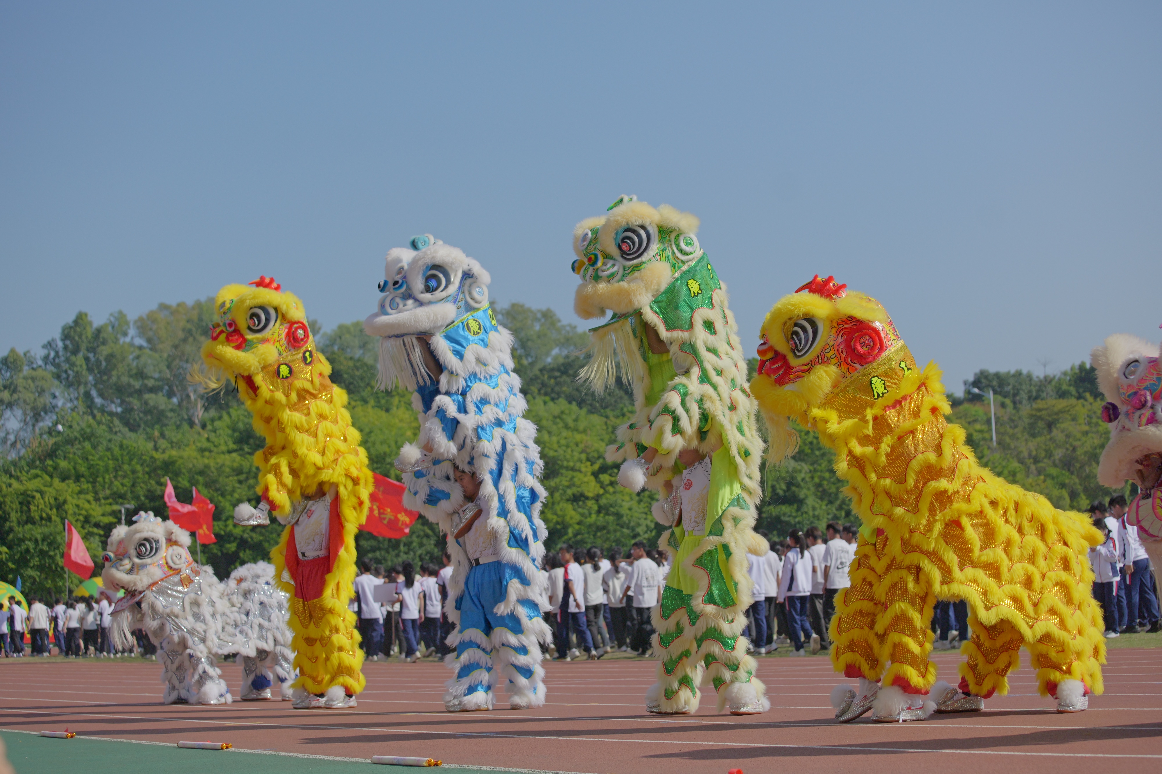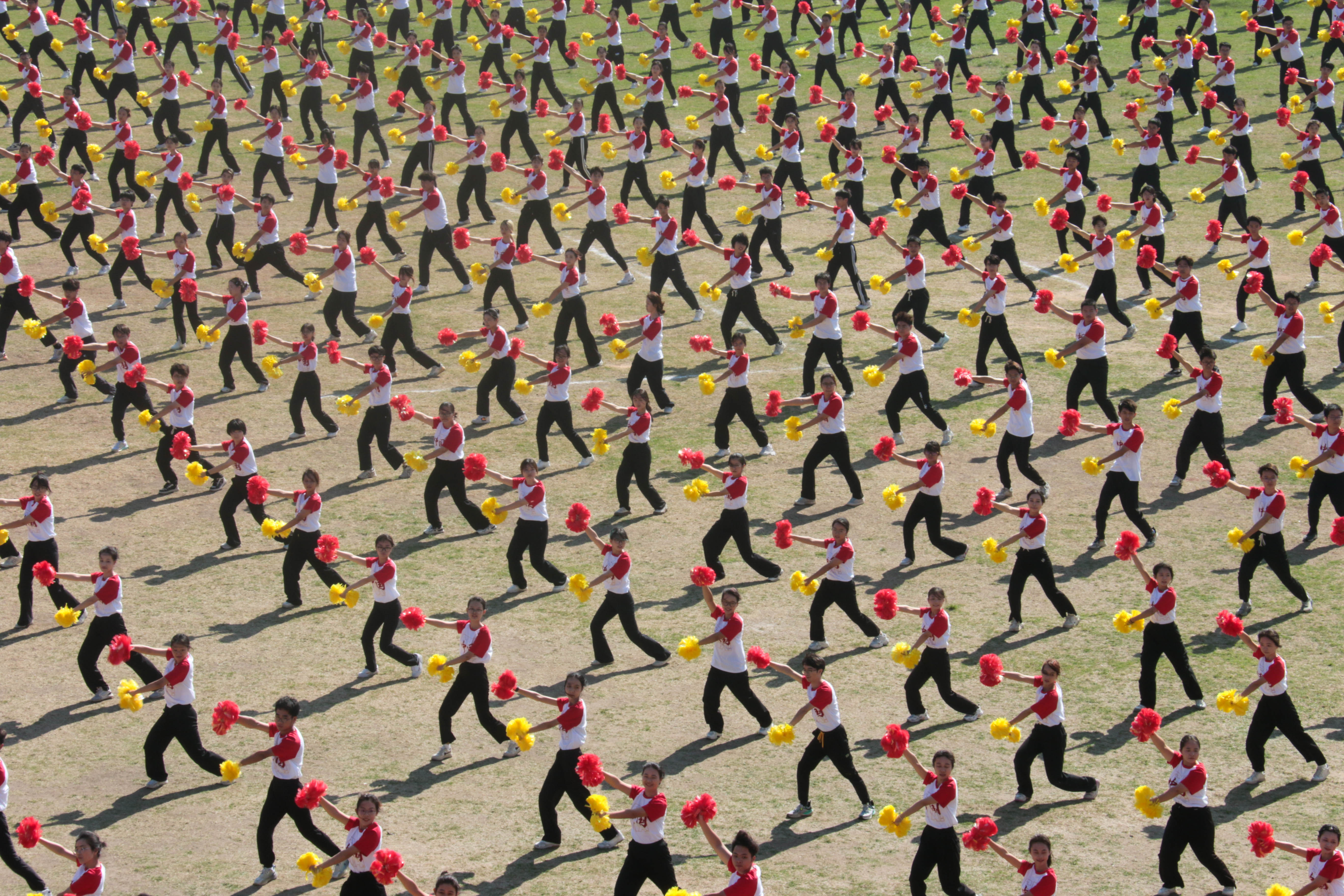 开幕式上,各色方队奏响青春舞曲,掀起梦想与热血的浪潮;在锣鼓喧天的热闹场景中,热情灵动的舞龙舞狮表演引来阵阵呐喊;千人啦啦操释放青春活力,学子们在律动的音乐里释放青春的激情,表达对生活的热爱;街舞表演的学子们用精湛的技巧,带领师生走进充满活力的世界;825名教职工为大家呈现八段锦的八个经典动作,引得阵阵喝彩。