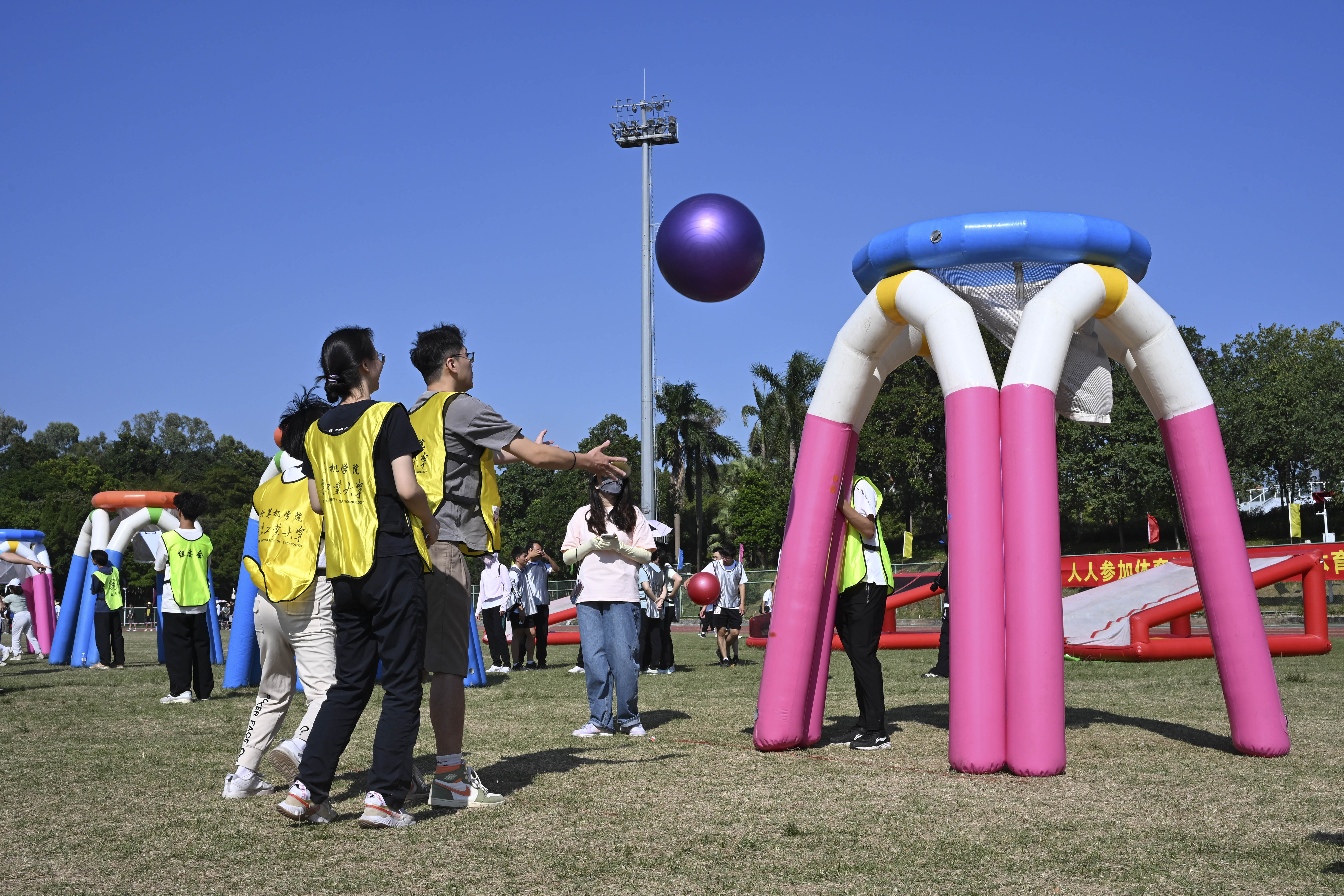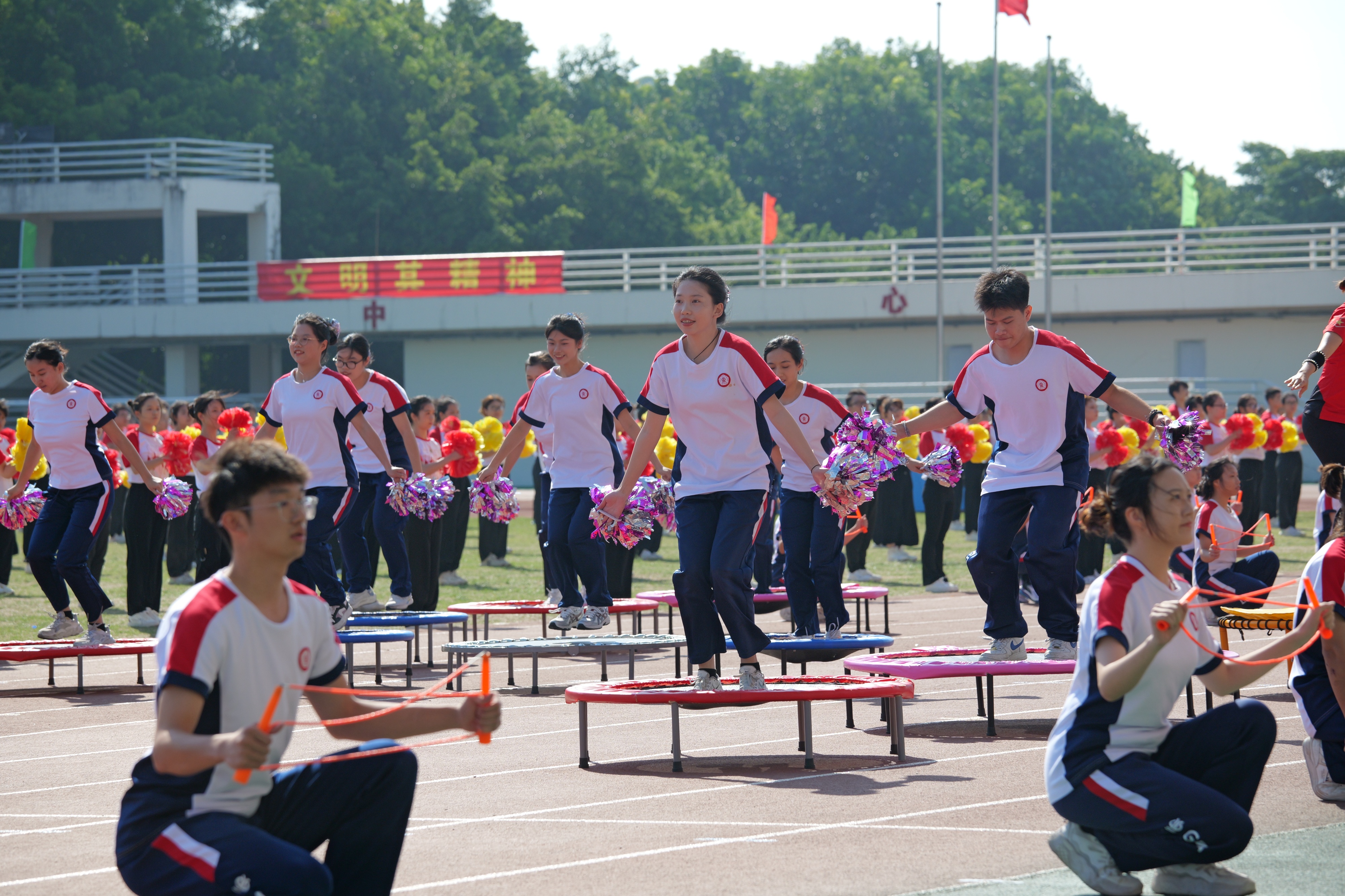 运动会赛场上,英姿飒爽的广工学子们起跑线前蓄势待发,终点线前不遗余力,飞扬的身姿如破竹斩浪势不可挡;助跑、起跳、飞跃,与地心引力对抗,与万顷蓝天比肩;蓄力、飞掷、下落,完美的抛物线像流星划过天际……运动场上的每一个拼搏瞬间,每一声呐喊助威,都是广工人追求卓越、奋勇向前的缩影。