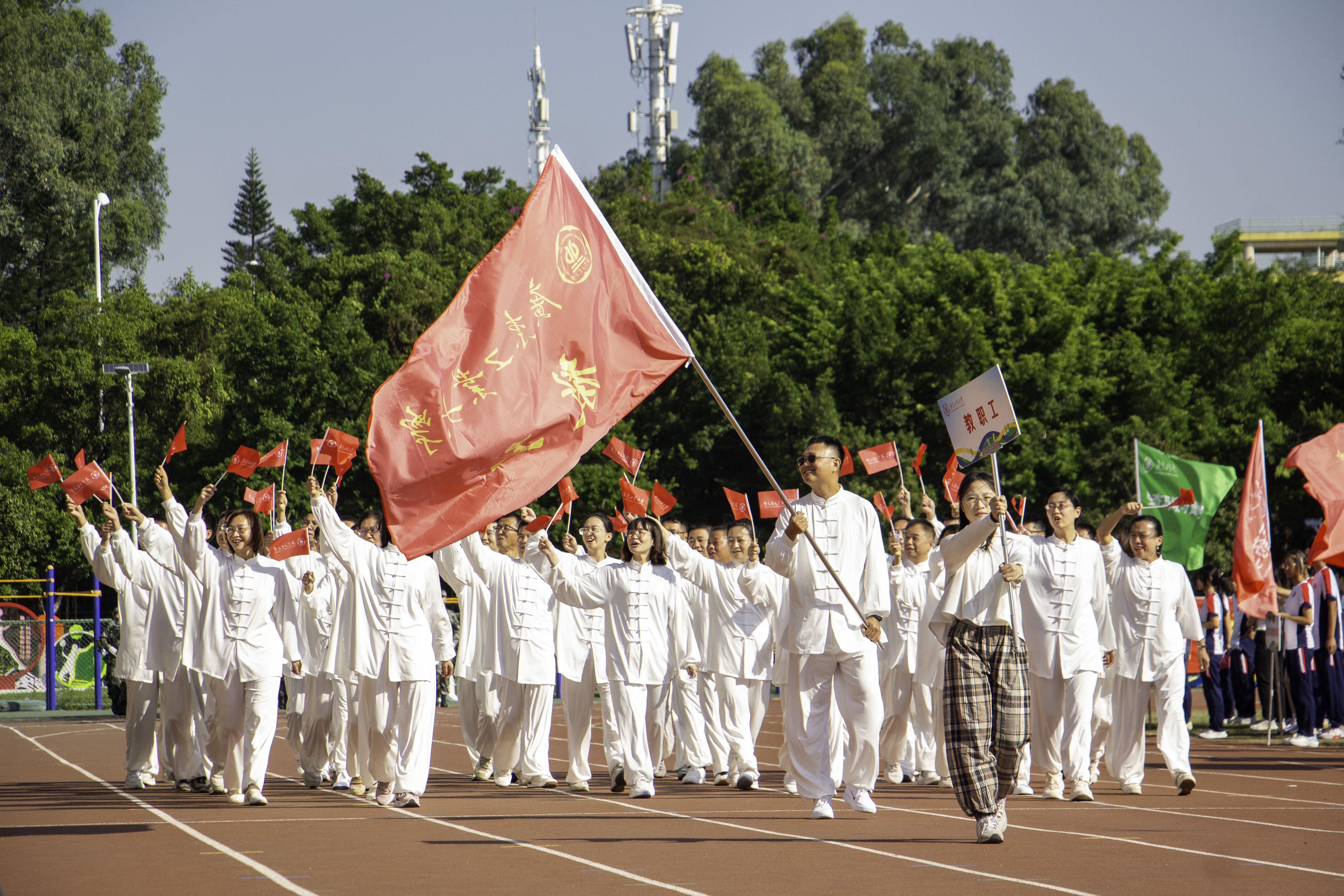 11月1-2日,2024华体会体育官方网站运动会在大学城校区田径场拉开帷幕,来自33个部门工会的1200余名教职工,以及全校23个学院的1500余名学生运动员报名参赛运动会。校党委副书记陈良友出席开幕式并宣布运动会开幕。校党委副书记朱蔚蔚、陈卓武,党委常委、纪委书记、广东省监委驻华体会体育官方网站监察专员庞建国,党委常委、宣传部部长张育广出席开幕式,学校体育运动委员会全体委员、机关部处负责人、各学院代表团参加。