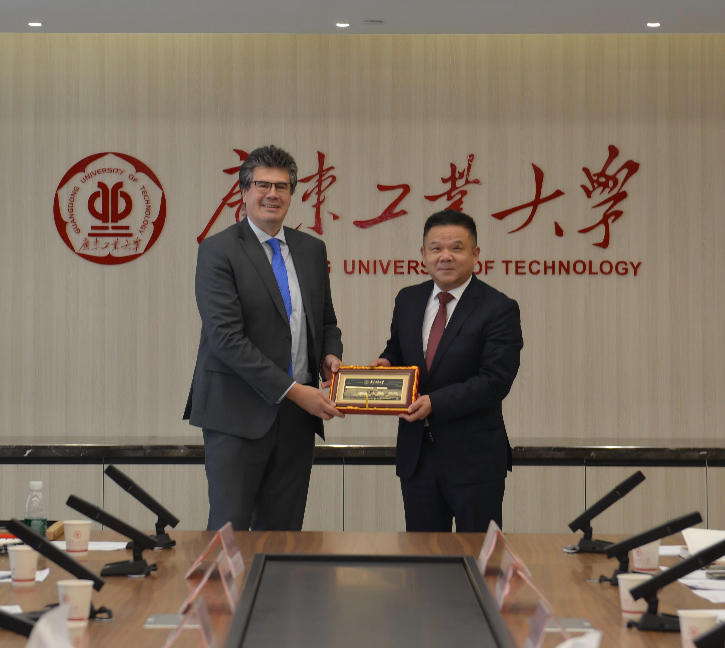 杜承铭对来宾表示欢迎,并从学校的基本情况、学科发展、国际合作等方面概述了最新发展情况,希望两校以合作协议的签署为起点,进一步加强双方在学生联合培养项目、合作科研、教师互访等方面的深入合作,助力双方合作取得更丰硕的成果。李荣誉对学校的热情接待表示感谢,介绍了昆士兰大学的发展现状和优势特色,期待利用学校的顶尖师资团队与广工开展更多学科的学生培养和学术合作。
