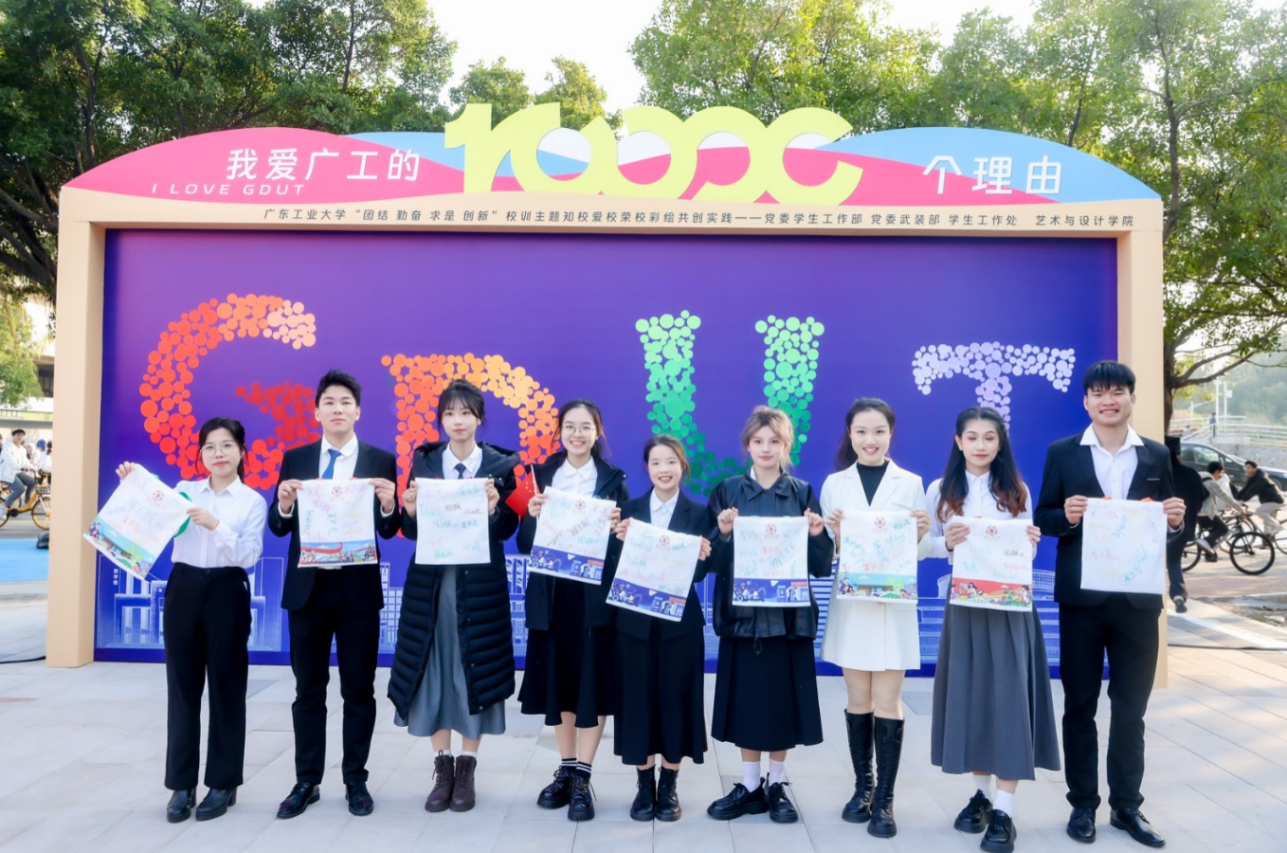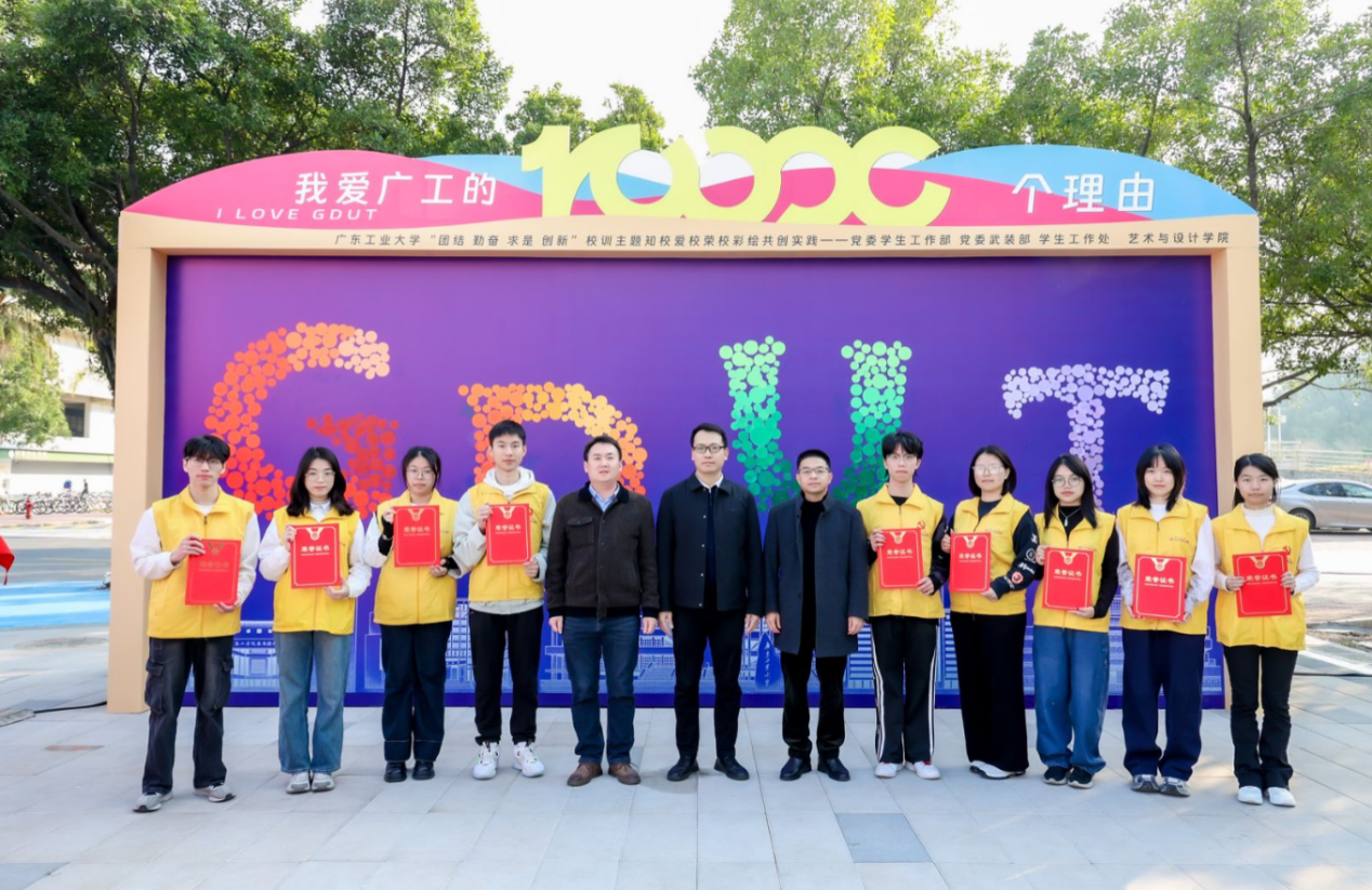 12月19日下午,广工校训主题知校爱校荣校彩绘共创实践活动在大学城校区挑战路广工通道举办,首次发布AI创作的活动主题曲《我爱广工的10000个理由》。学校党委副书记陈卓武出席并讲话,党委学生工作部、总务部、艺术与设计学院、国际教育学院相关负责人以及各学院学生代表、楼长代表、彩绘共创志愿者代表等参加活动。