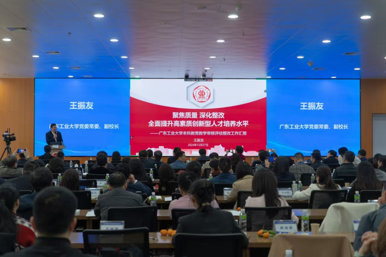 12月27日,广东省教育厅围绕“完善高校本科教育教学质量保障体系 培育践行特色质量文化”这一主题,在五邑大学召开全省普通高等学校本科教育教学审核评估工作推进会,总结全省审核评估工作情况,部署推进评估整改工作,交流研讨质量保障体系与质量文化建设情况。教育部教育质量评估中心副主任江河,高等教育院校评估处处长盛敏,广东省委教育工委委员、省教育厅党组成员、副厅长冯伟,五邑大学党委书记栾天罡等出席了会议,全省69所本科高校的校长、副校长、教务处长、评估中心主任等160余位负责同志参加了会议。广工党委常委、副校长王振友受邀在大会上作审核评估整改工作经验分享。