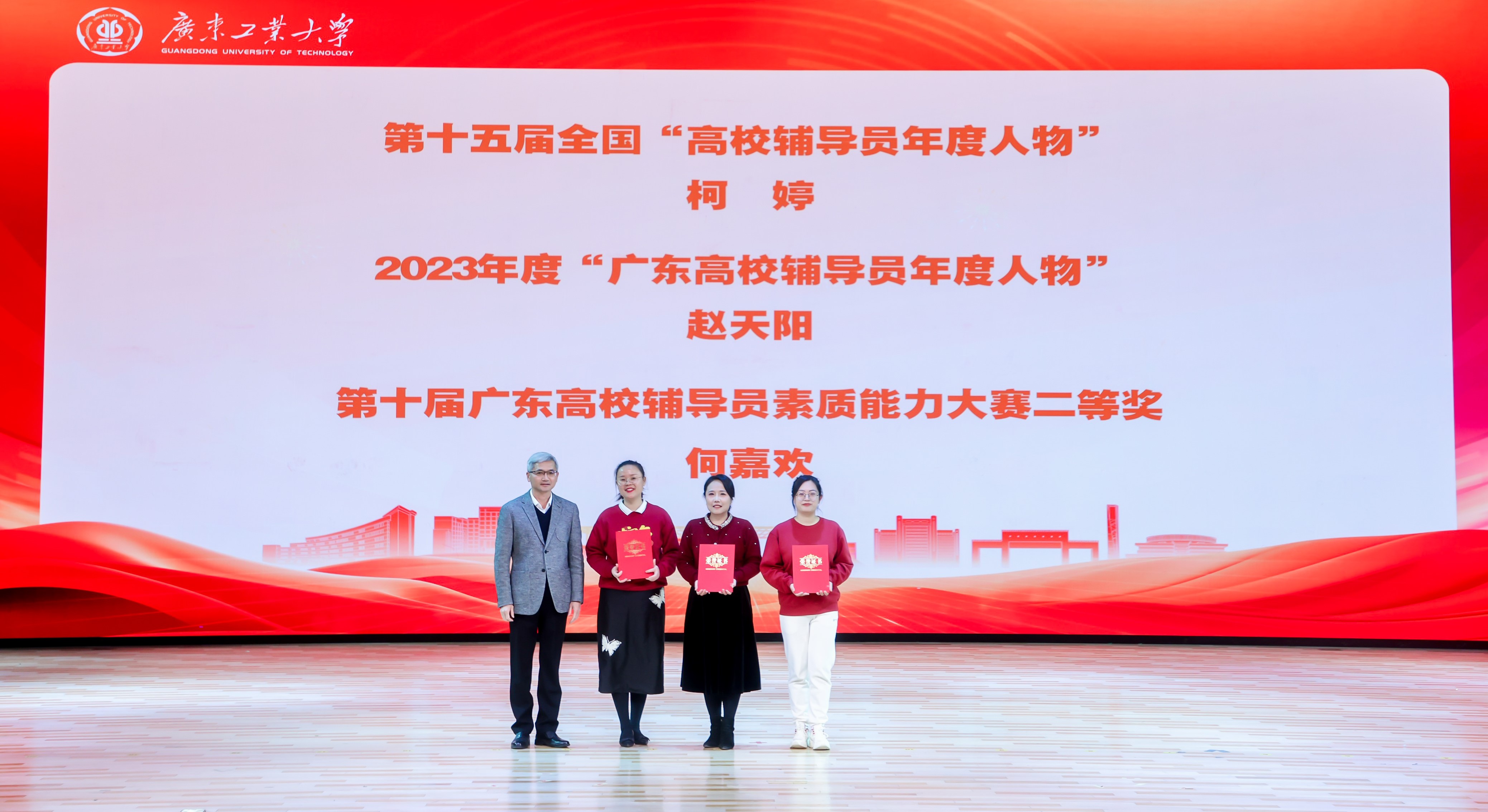 陈卓武为第十五届“高校辅导员年度人物”、2023年“广东高校辅导员年度人物”、第十届广东高校辅导员素质能力大赛获奖辅导员颁奖。活动还表彰了华体会体育官方网站2024年优秀学生工作集体和优秀个人,与会领导、嘉宾为相关获奖单位和个人颁奖。