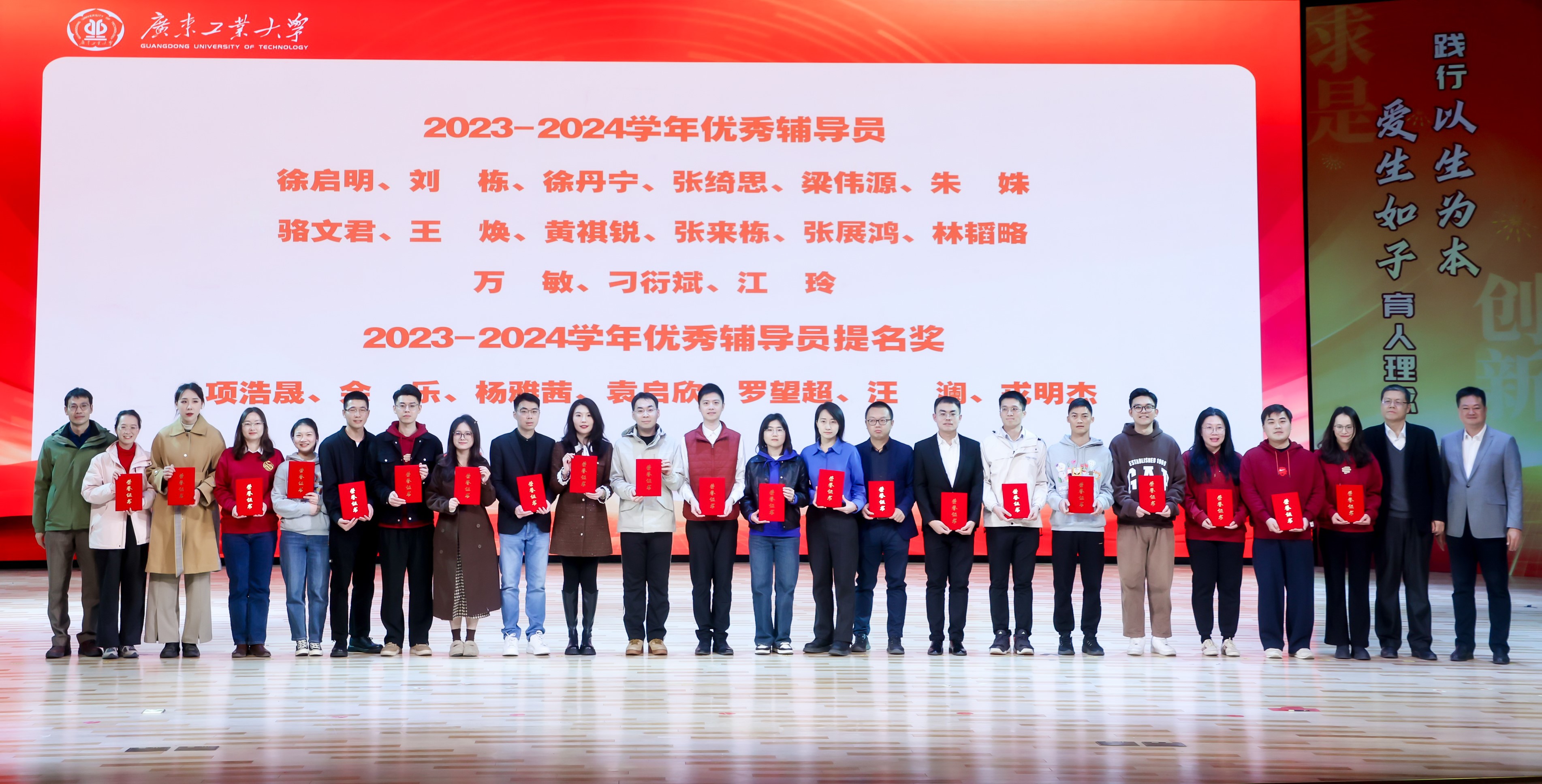 会上还举行了新老辅导员“传帮带”结对仪式。学工部为2024年新入职的辅导员分别选聘“前辈”辅导员担任工作上的导师,进一步加强新老辅导员工作经验的研讨分享,实现在育人事业上的共建共进,发扬好广工学工队伍“传帮带”的优良传统。仪式上,辅导员导师代表为新入职辅导员代表颁授“薪火相传,立德树人”绶带及“共勉的话”纪念证书。