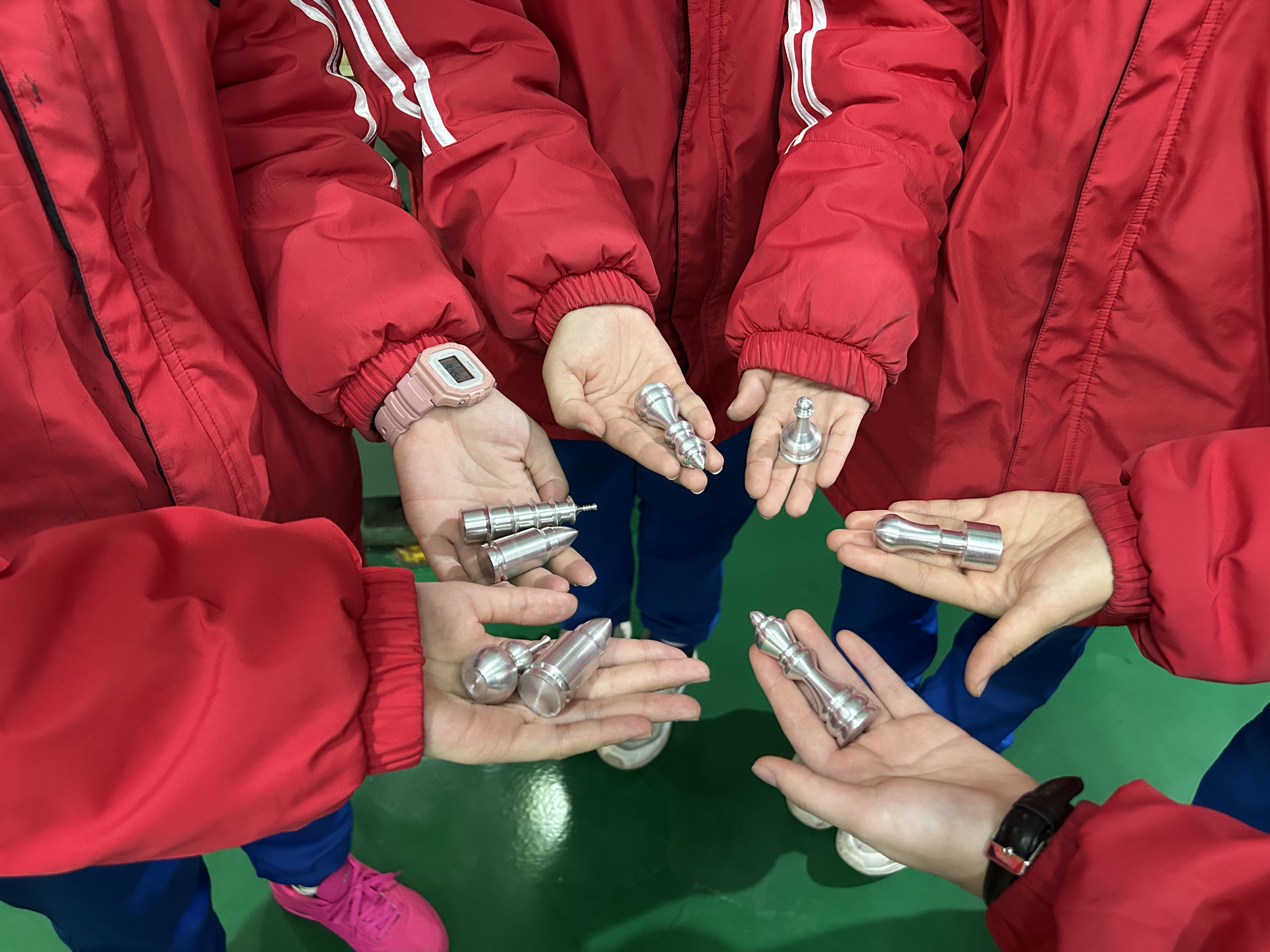 在3D打印实践项目,同学们将自己心中心仪的玩偶与摆件一点点地“打印”出来,脸上洋溢着自豪的笑容。在激光加工实践项目,同学们充分发挥自己的想象力和创造力,亲自动手设计、制作,制作出自己独一无二的剪纸和名片。在人工智能实践项目,同学们通过对人工智能深度学习和机器视觉的认知,进行机械臂与人工智能套件实践操作,完成了智能垃圾分类系统设计与操作。在数控车加工实践项目,同学们领略到了机床加工的魅力,感受“削铁如泥”的奇妙过程,加工出广州塔、国际象棋、子弹等零件,惊叹现代科技的强大力量,加深对科技的理解和感悟。在传统的铸造实践项目,同学们在“玩沙子自由”的游戏中,尽情发挥自己的想象力和创造力,完成了轮子的整模造型。在机器人拆装实践项目中,同学们通过虚拟仿真软件了解机器人的构造与运行逻辑,并亲身体验操控盘和机器人之间灵活切换控制,感受科技的魅力。