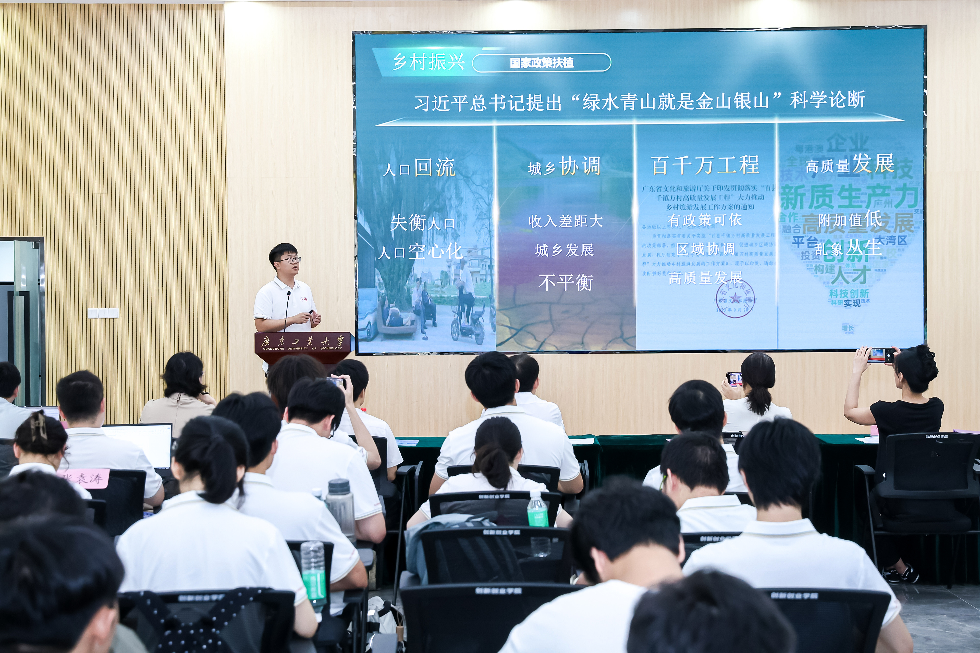 立足项目研究调研的需求和学生视野拓展的计划,本期科创营精心策划并组织了丰富多元的体验活动,从香港段“走进香港顶尖高校”、“设计创新思维讲座”,到广东段“参访华为坂田基地、优必选科技、广汽埃安、视源股份等头部企业”、“实地考察增城现代农业、智慧农场”再到“工大创谷创业先锋面对面”,让营员们在行走中触碰湾区创新脉搏,见证乡村振兴成果,感知广工创业硬核。“当看到广汽埃安的无人工厂每53秒下线一台新能源汽车,我真切感受到大湾区制造业的硬核实力。”香港理工大学赵庆森同学惊叹道。来自中国科学技术大学的乔钦禹表示:“两位广工优秀创业学长科技报国的创业抱负和工大创谷优越的创新创业环境,让我极其向往湾区这片创业热土。希望未来有更多机会可以与广工的同学一起交流合作。”