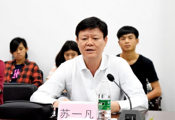 苏一凡代表学校接受公司捐赠并讲话。他指出,我校一直以来十分重视学生创新创业,鼓励同学们要敢于追梦,勇于创新,并介绍了学校的相关政策措施以及所取得的成绩。他说,本次公司资助不仅支持了我校学生创新创业工作,更体现了企业的社会责任感以及尊重人才、崇尚科学的先进理念。创新基金的设立对校企合作提升大学生创新创业能力是一次很好的探索和尝试,具有示范意义和导向作用,希望实现校企互惠互利,合作共赢的目标。期望同学们努力提升创新创业能力,将来回报社会、回报企业。