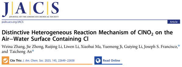 近日,我校环境科学与工程学院、环境健康与污染控制研究院安太成教授团队与美国宾夕法尼亚大学Joseph S. Francisco教授团队合作,在硝酰氯(ClNO2)的气-液界面形成及其产生氯自由基机理的理论化学计算方面取得重要进展。研究成果以《Distinctive heterogeneous reaction mechanism of ClNO2 on the air‒water surface containing Cl》为题,于2023年10月9日发表在Journal of the American Chemical Society, 2023, 145: 22649-22658期刊上。论文的第一作者为张维娜副教授,通讯作者为安太成教授和Joseph S. Francisco教授,华体会体育官方网站为论文的第一单位。