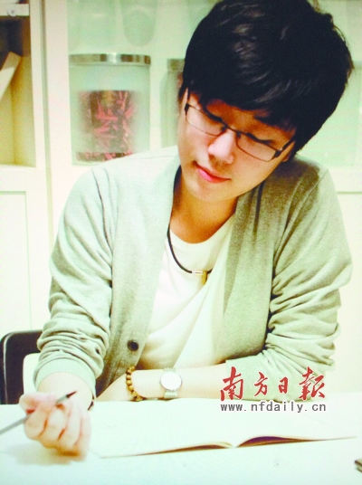 这是林远志自己创作的漫画形象“肥仔志”,而其创作蓝本就是自己。大一时,林远志每天画一张四格漫画,记录自己生活上的各种琐事和趣事,并放在博客上供网友浏览。没想到,这些初期的四格漫画很受同学们欢迎,就连平时不爱看漫画的父母也成了自己的“忠实粉丝”。而在他们的鼓励下,林远志随后便有了创作《肥仔志》的想法。