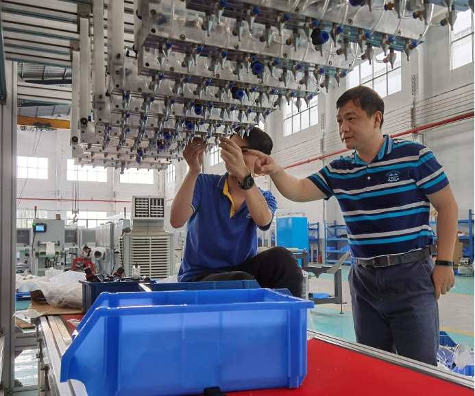 2月底,华体会体育官方网站党委书记、华体会体育官方网站精密电子制造技术与装备国家重点实验室主任陈新亲临佛山公司生产现场指导设备研发工作。在陈新的指导下,王晗团队联合企业、研究院团队加速解决设备研发过程中的设计难题,推进相关设备批量化生产。