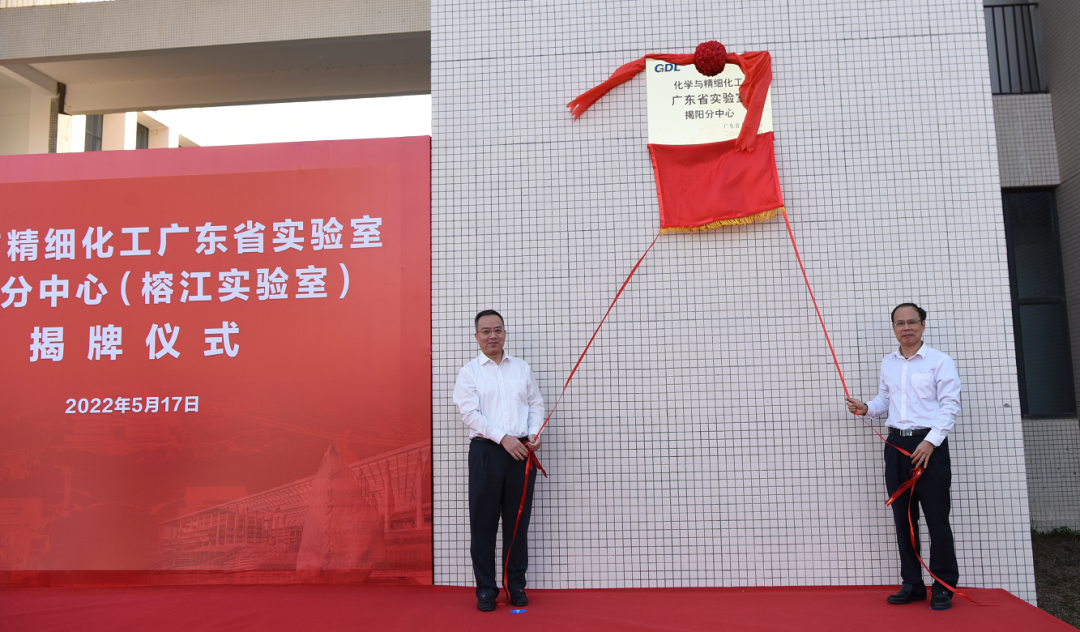 17日下午,化学与精细化工广东省实验室揭阳分中心——榕江实验室揭牌仪式在华体会体育官方网站揭阳校区举行,市委副书记、市长支光南,华体会体育官方网站党委副书记、校长邱学青参加活动并为榕江实验室揭牌。