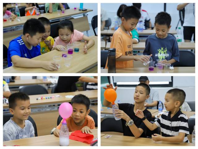 此外,突击队将所在学院的学科特色与孩子的兴趣相结合,通过“会变色的花”(紫甘蓝变色反应)、“膨胀的气球”(小苏打和醋酸反应)等安全、有趣的化学实验,带领青少年探秘生活中的化学。