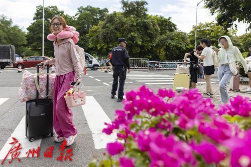 广工的学长、学姐帮助新生搬运行李至宿舍。