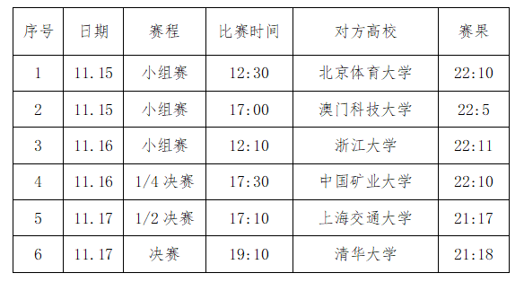 在去年举办的第25届中国大学生篮球联赛(CUBAL)男篮一级联赛全国总决赛中,华体会体育官方网站曾战胜清华大学,斩获校史上第一个CUBAL全国总决赛冠军。