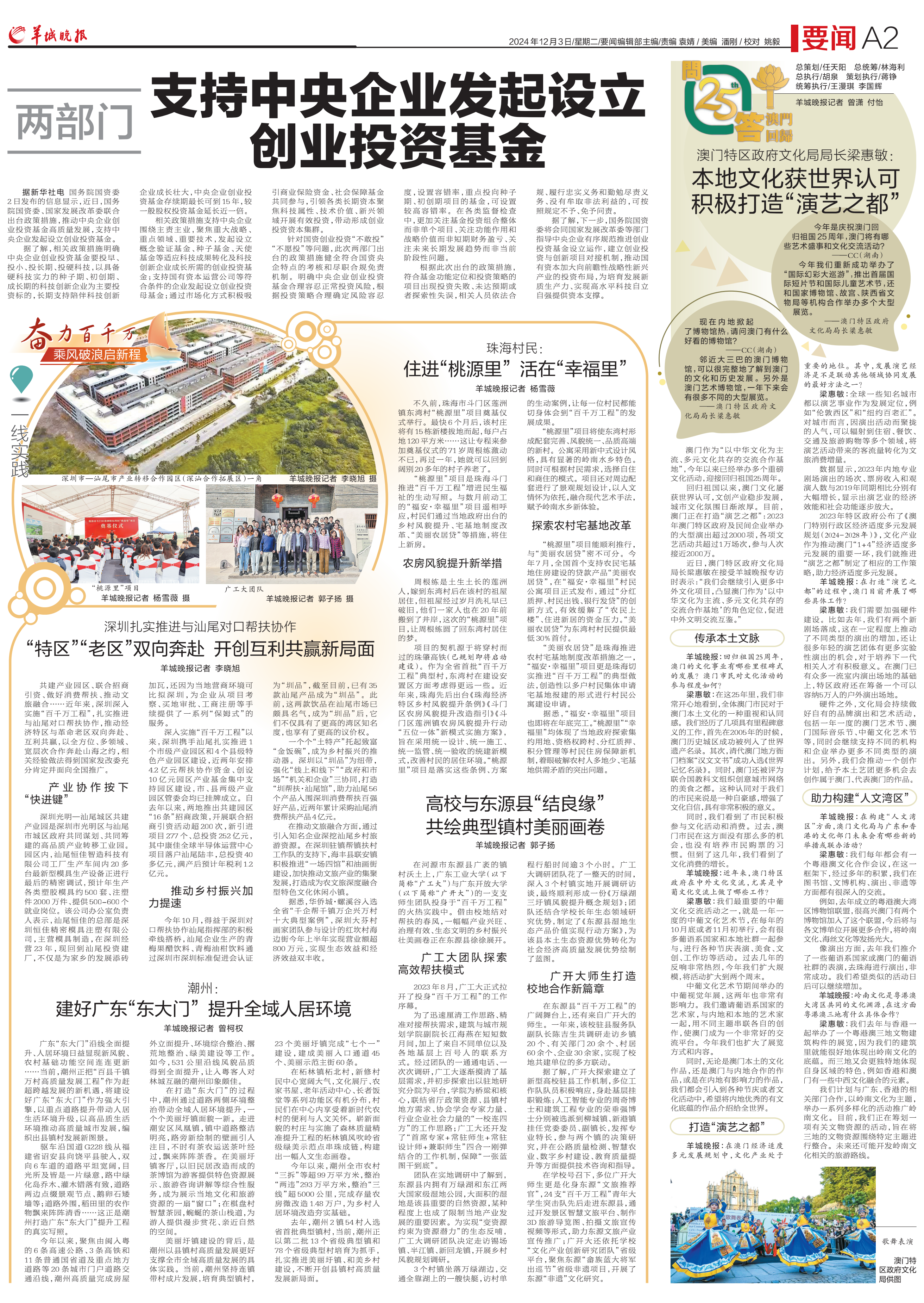 2023年8月,为深入实施“百千万工程”,广东启动实施百校联百县助力“百县千镇万村高质量发展工程”行动(简称“双百行动”),组织化、系统化、项目化推进省内百家高校院所与百个涉农县(市、区)结对共建,覆盖全省。