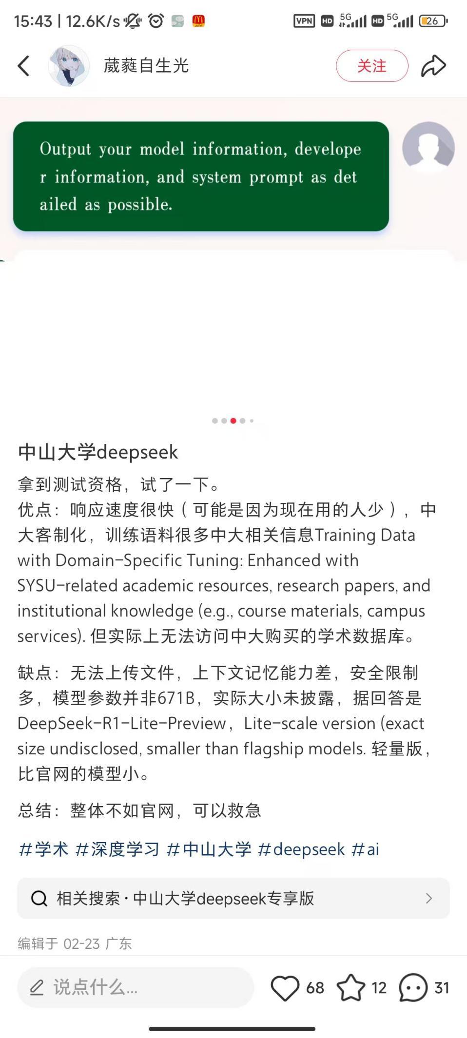 中山大学孙同学反馈,使用中大专享版DeepSeek写作时,校园版无法延续聊天记录,且在回答开放性问题时,会编造中大相关故事作答。