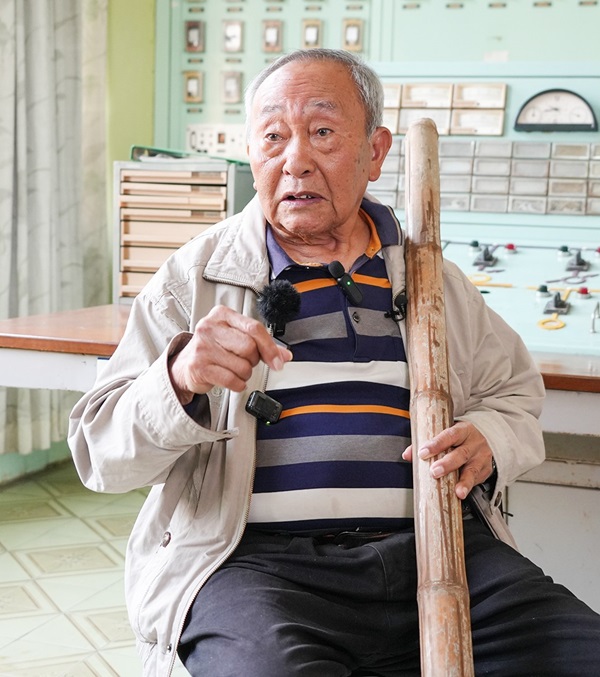 当时,莫康平在桥头抽水站工地负责土方丈量。由于施工装备落后,大伙需要通过人工开挖、肩挑背扛的方式开山劈岭、凿洞架桥、修堤筑坝。为了提高施工效率,莫康平挑了一根结实的竹子做成扁担,用来挑重物。担心工友拿错,他还特意用红漆在扁担上写下了自己的名字。