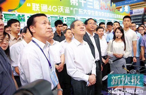 ■韩启德(中)参观第十三届“挑战杯”省赛优秀作品展。新快报记者 夏世焱/摄。