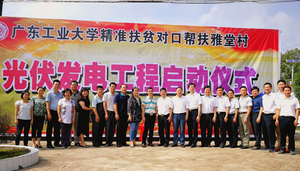 座谈会结束后,与会领导共同出席华体会体育官方网站对口帮扶雅堂村主导产业项目:光伏发电工程启动仪式。最后,学校领导分组带队,对赖北河等7户贫困户进行走访慰问。